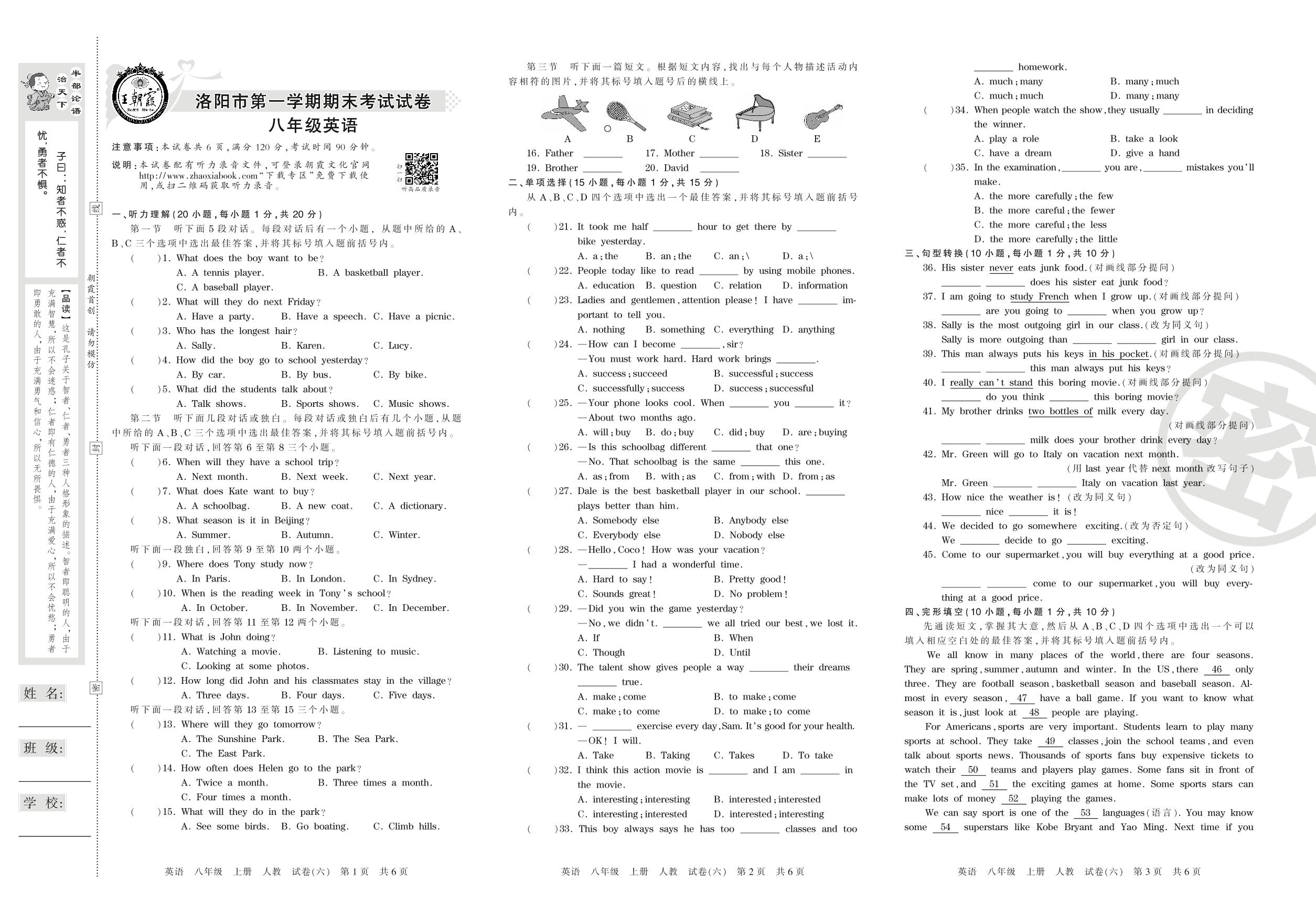 2016-2017学年第一学期洛阳市八年级英语试卷(人教版)【6】