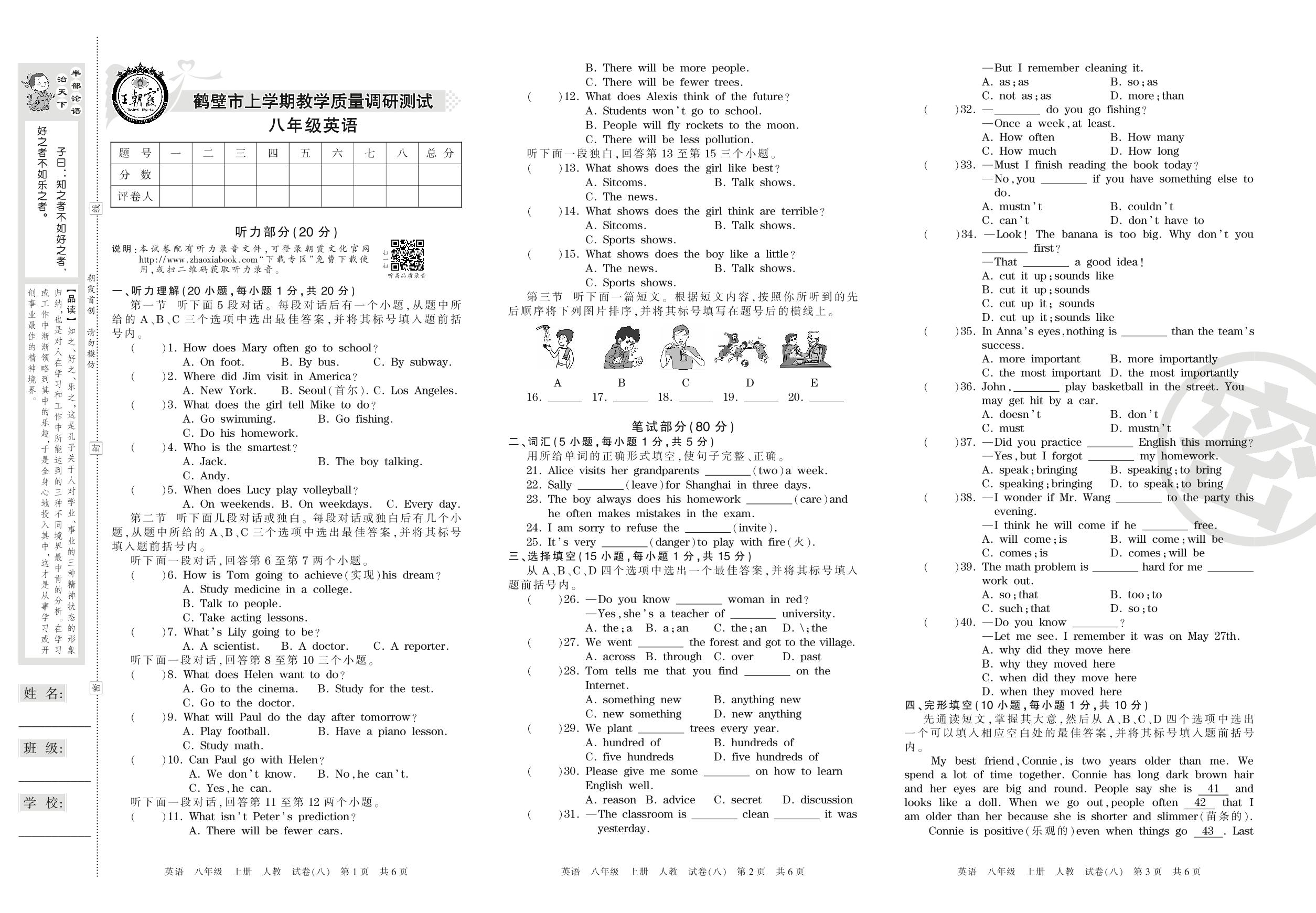 2016-2017学年第一学期鹤壁市八年级英语试卷(人教版)【8】
