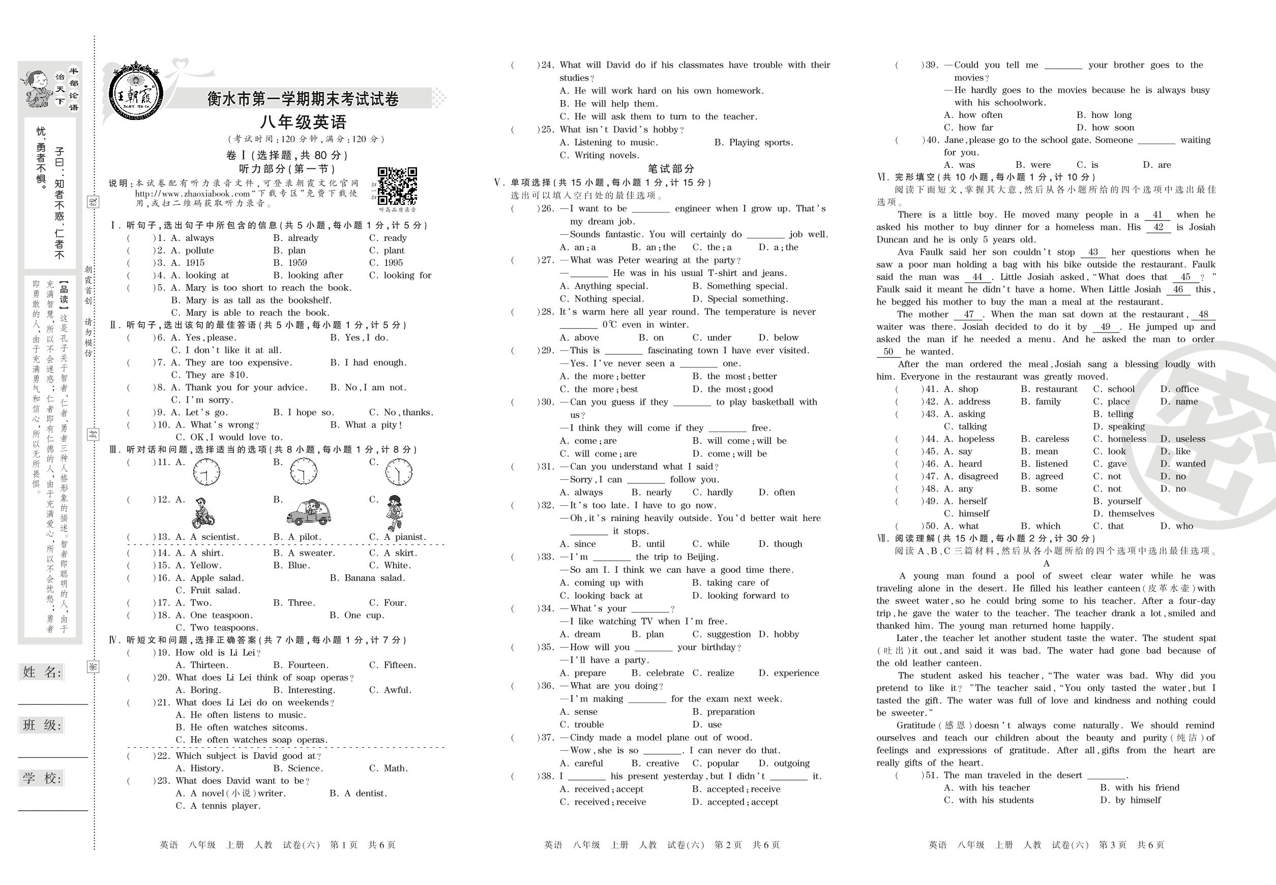 2016-2017学年第一学期衡水市八年级英语试卷(人教版)【6】