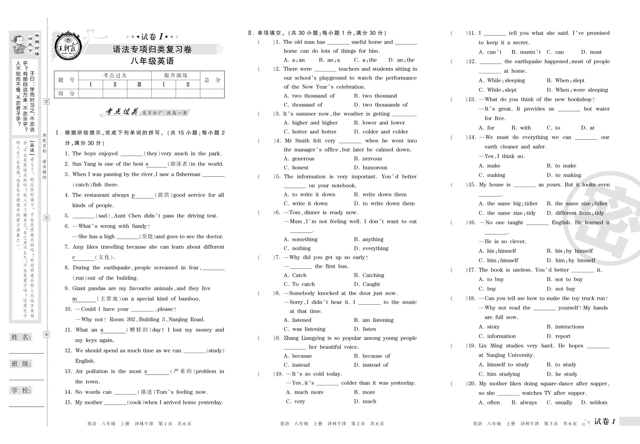 王朝霞期末专项卷八年级上册英语(译林版)【1】