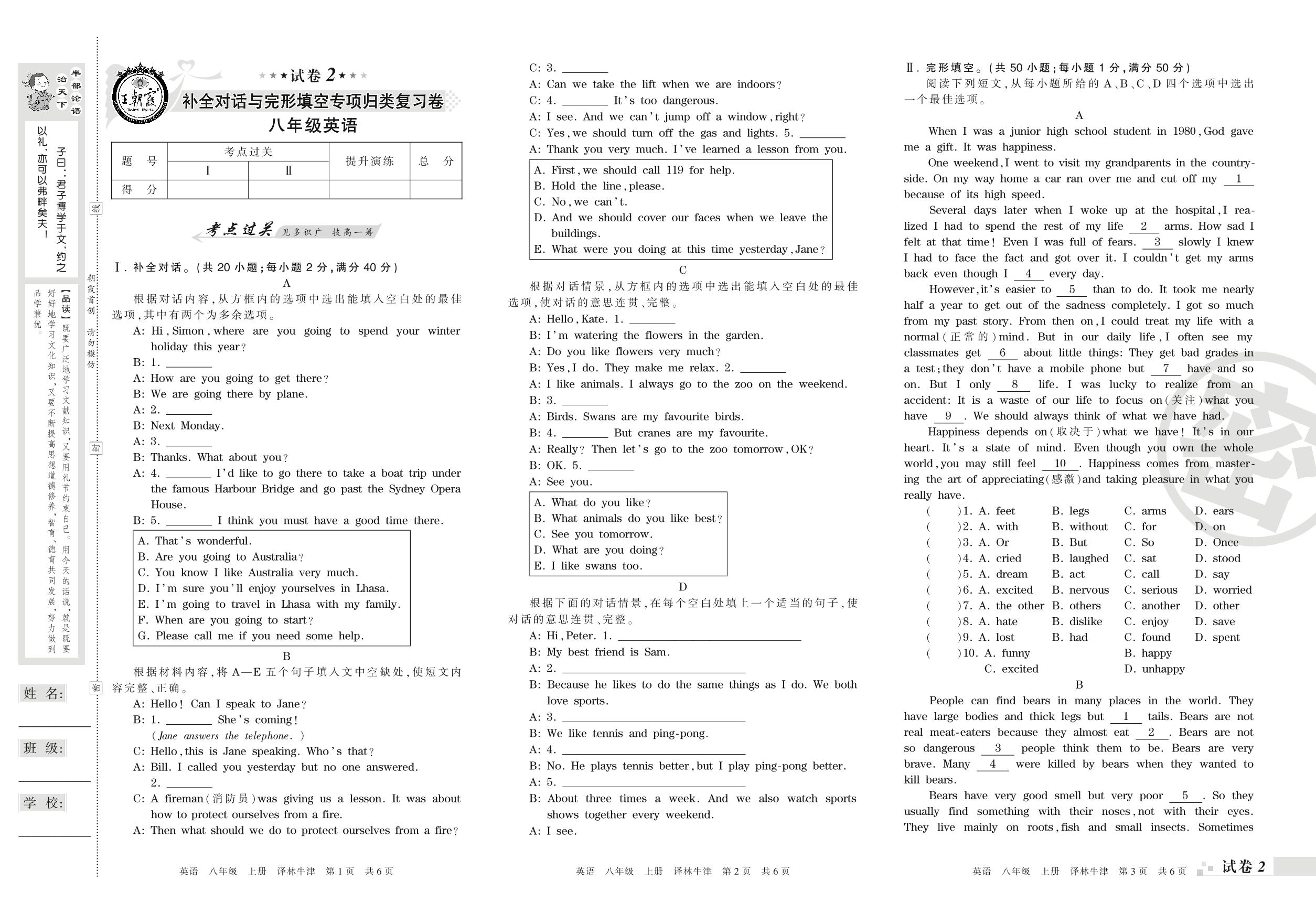 王朝霞期末专项卷八年级上册英语(译林版)【2】