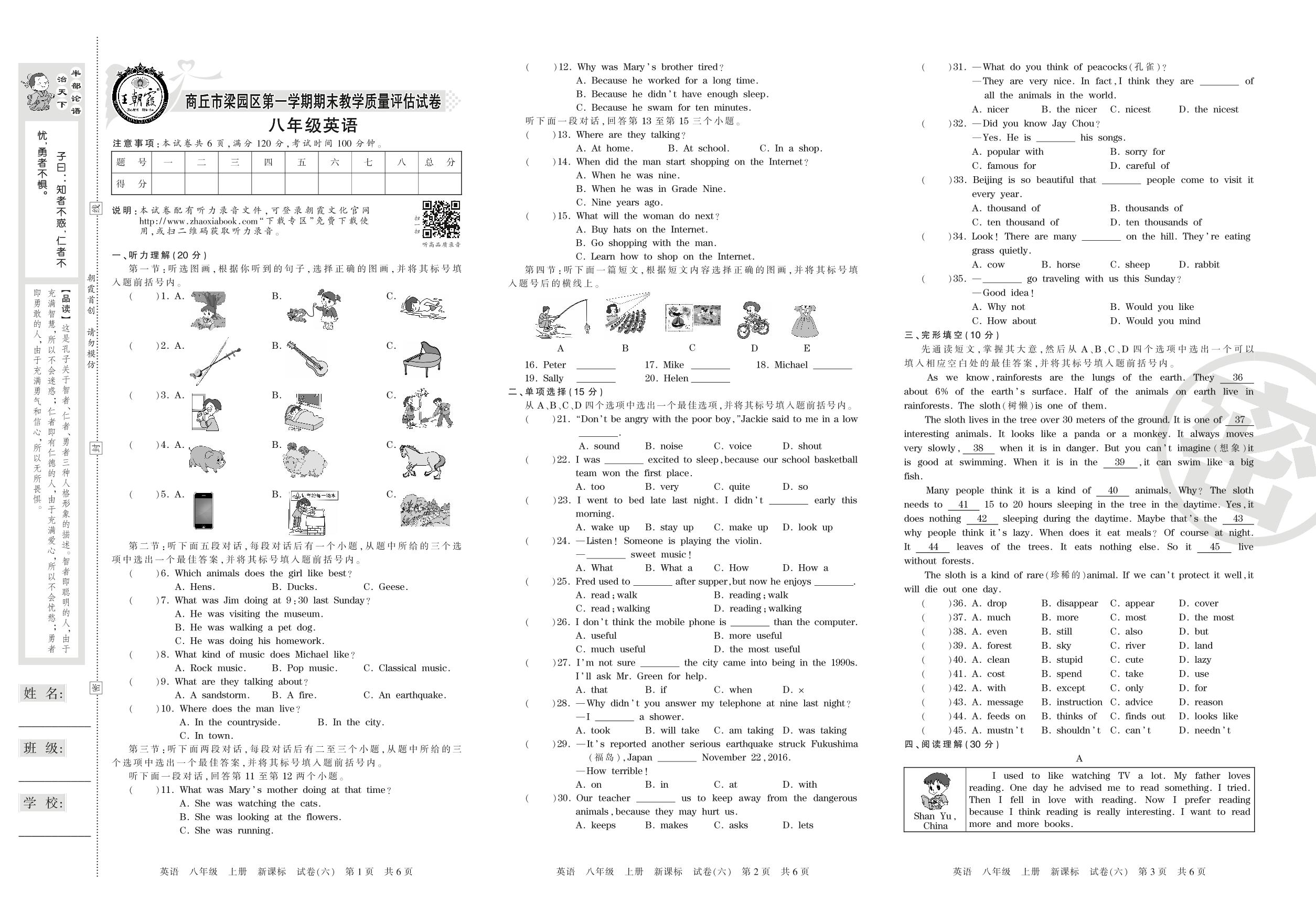 2016-2017学年第一学期商丘市梁园区八年级英语试卷(新课版)【6】