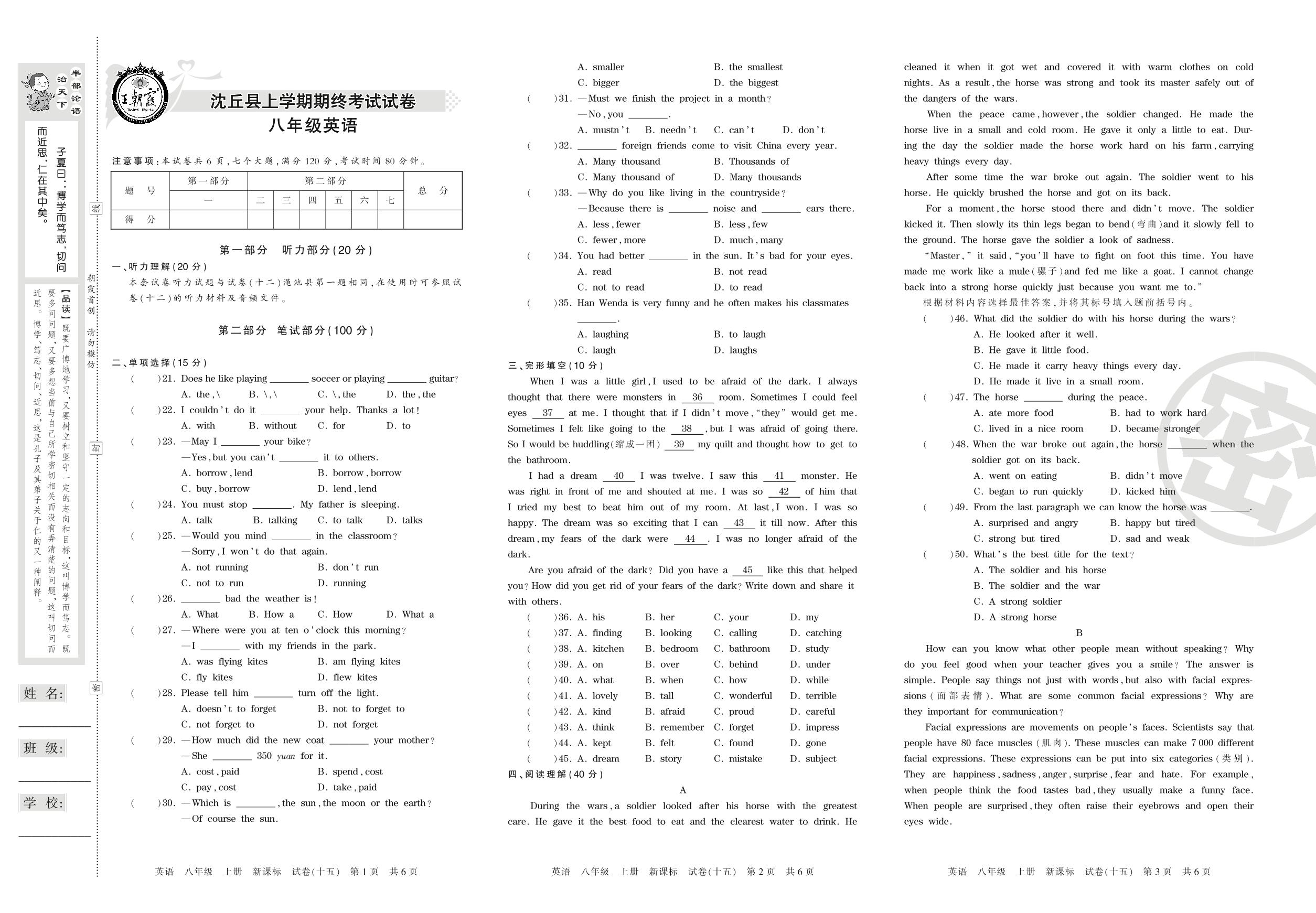 2016-2017学年第一学期周口市沈丘县八年级英语试卷(新课版)【15】