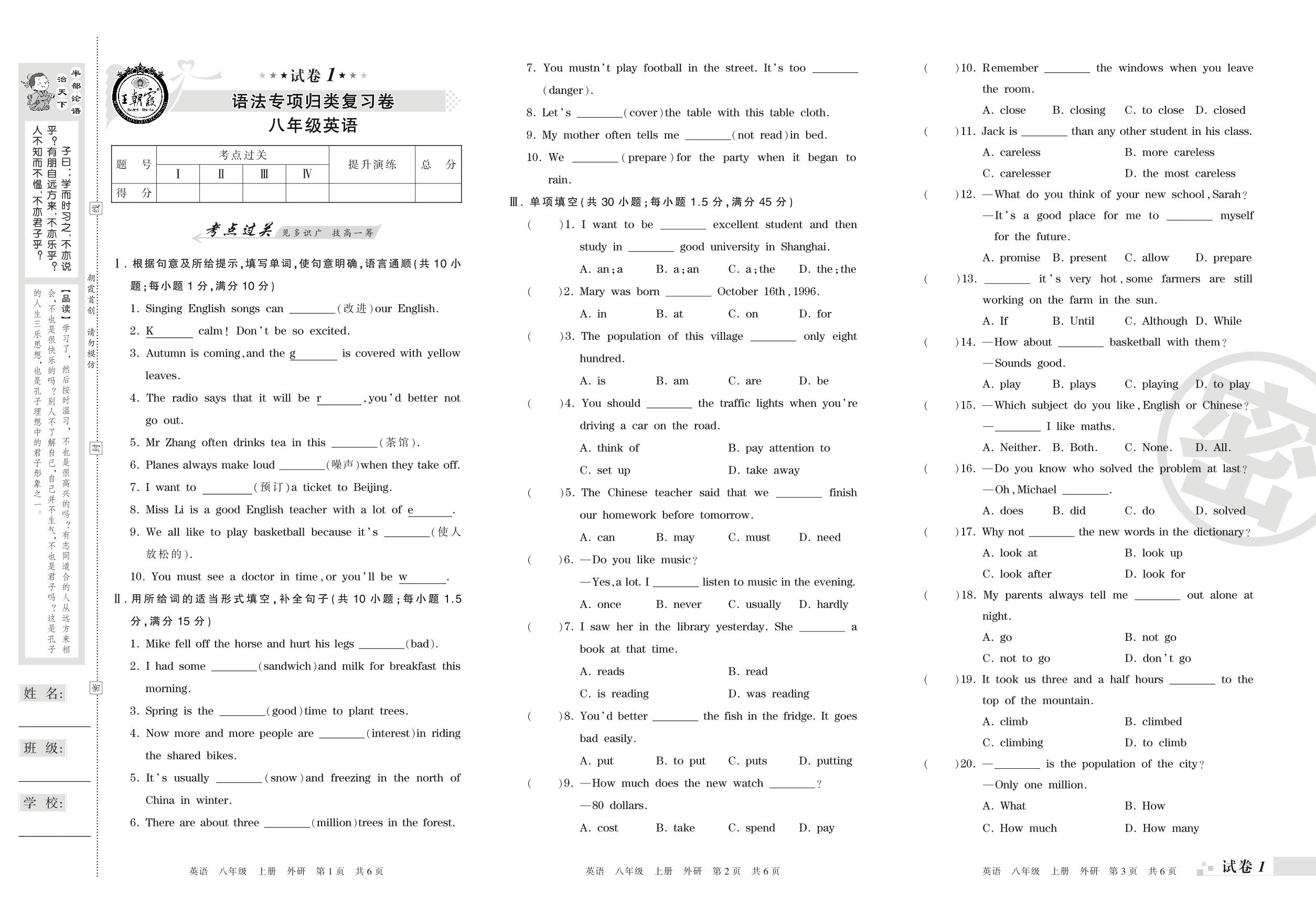 王朝霞期末专项卷八年级上册英语(外研版)【1】