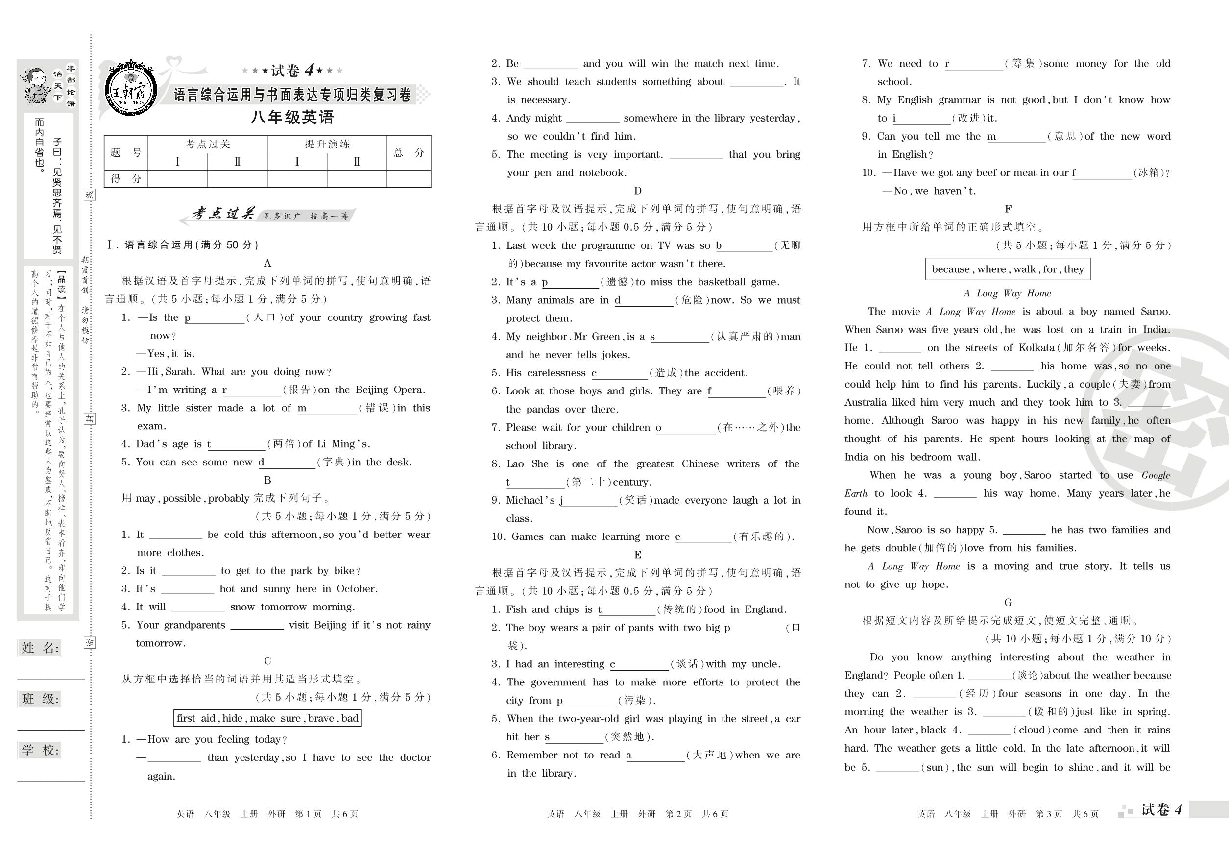 王朝霞期末专项卷八年级上册英语(外研版)【4】