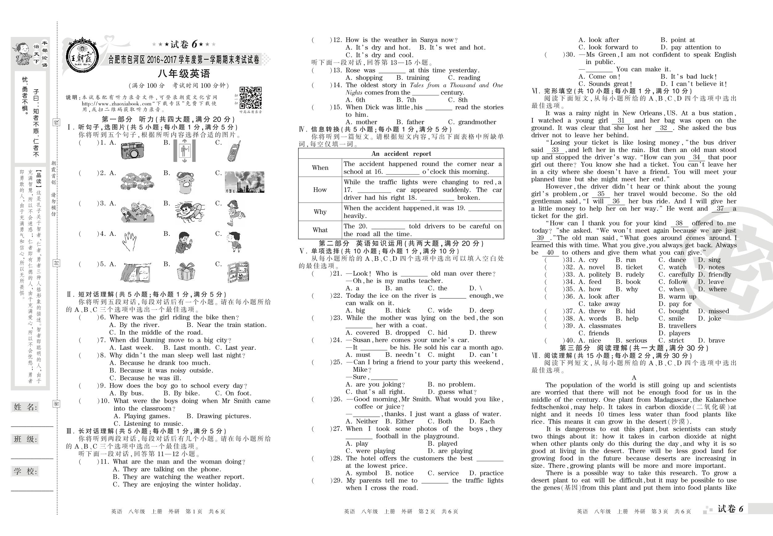 2016-2017学年第一学期合肥市包河区八年级英语试卷(外研版)【6】