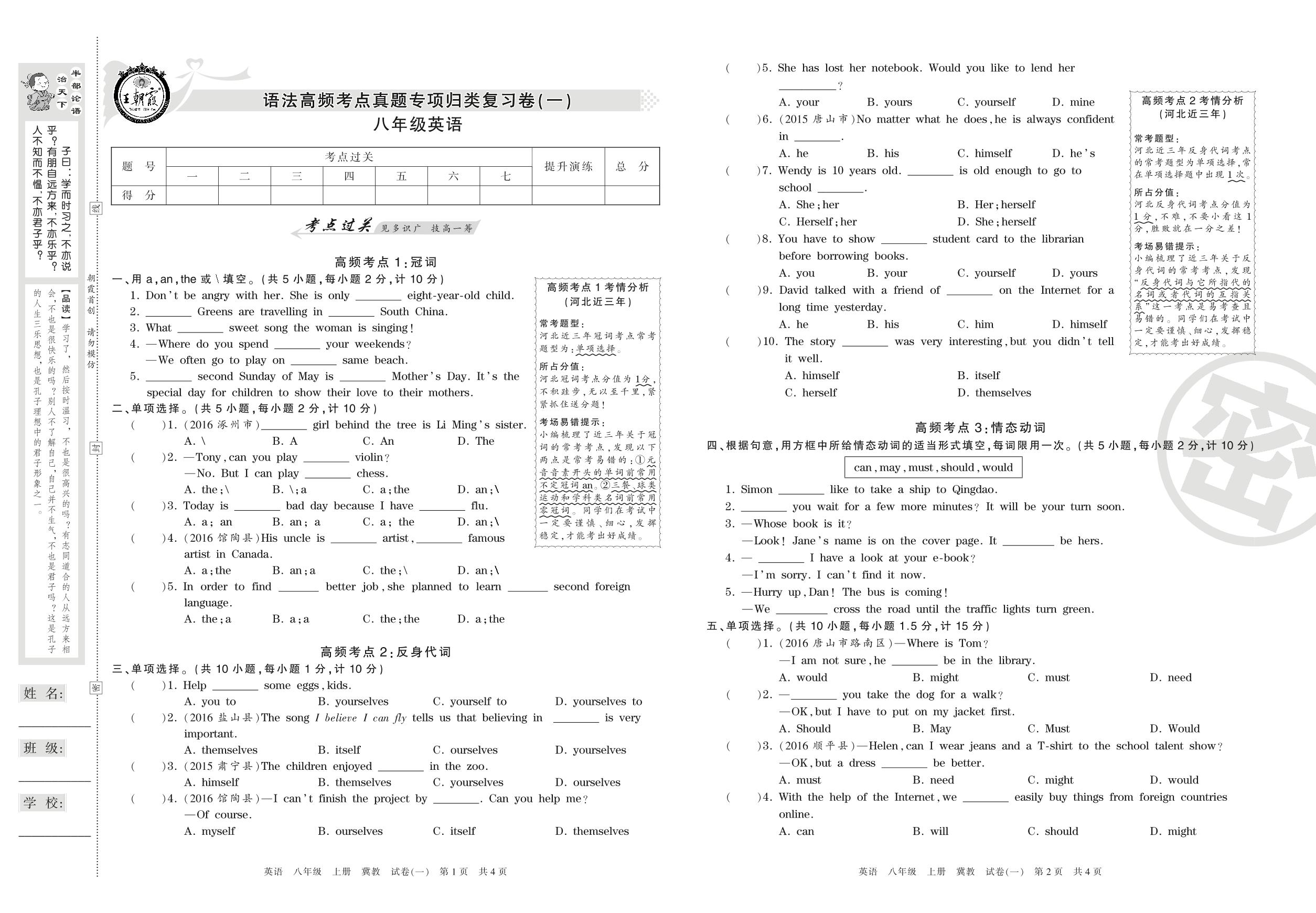 王朝霞期末专项卷八年级上册英语(冀教版)【1】