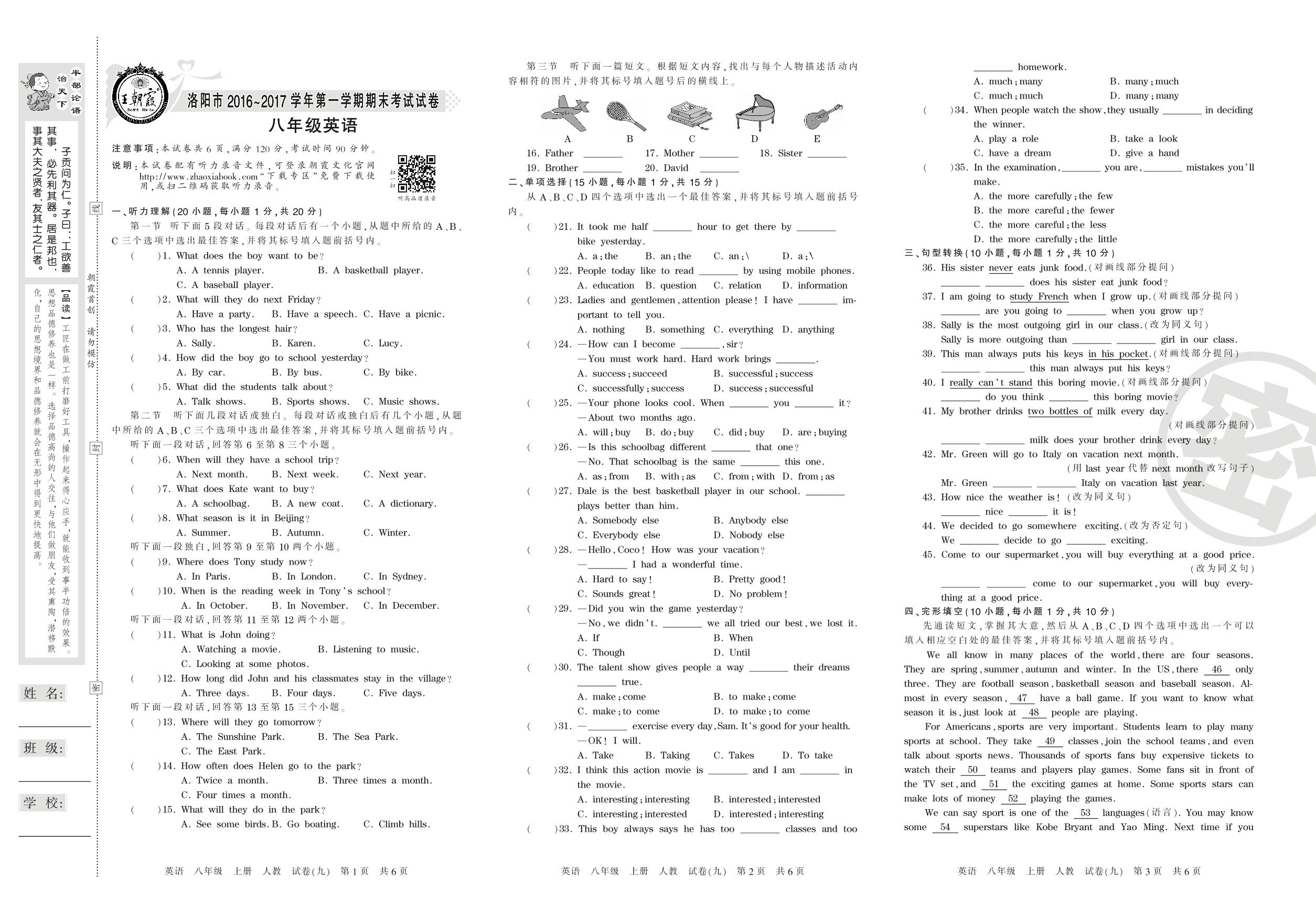 2016-2017学年第一学期洛阳市八年级英语试卷(人教版)_R210809124324【9】
