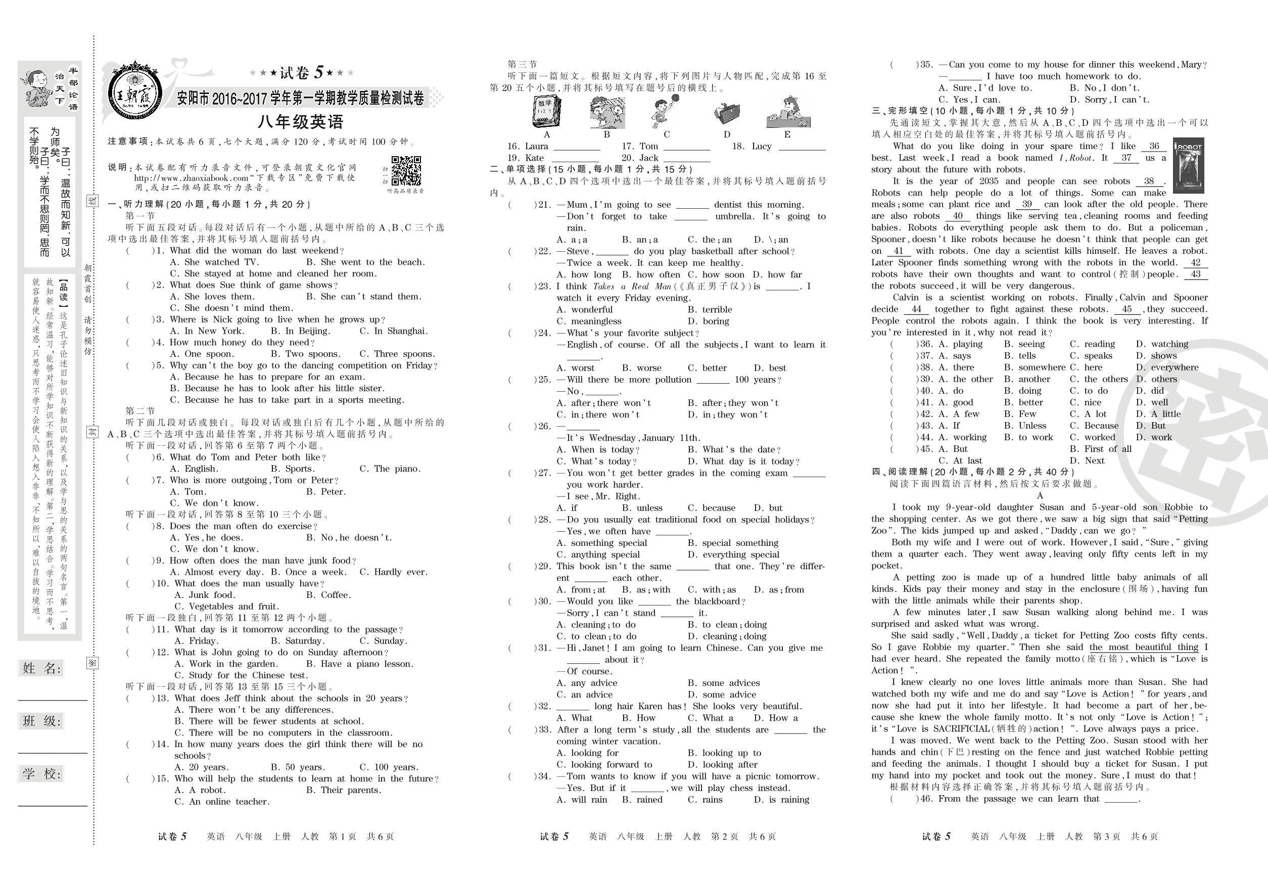 2016-2017学年第一学期安阳市八年级英语试卷(人教版)【5】