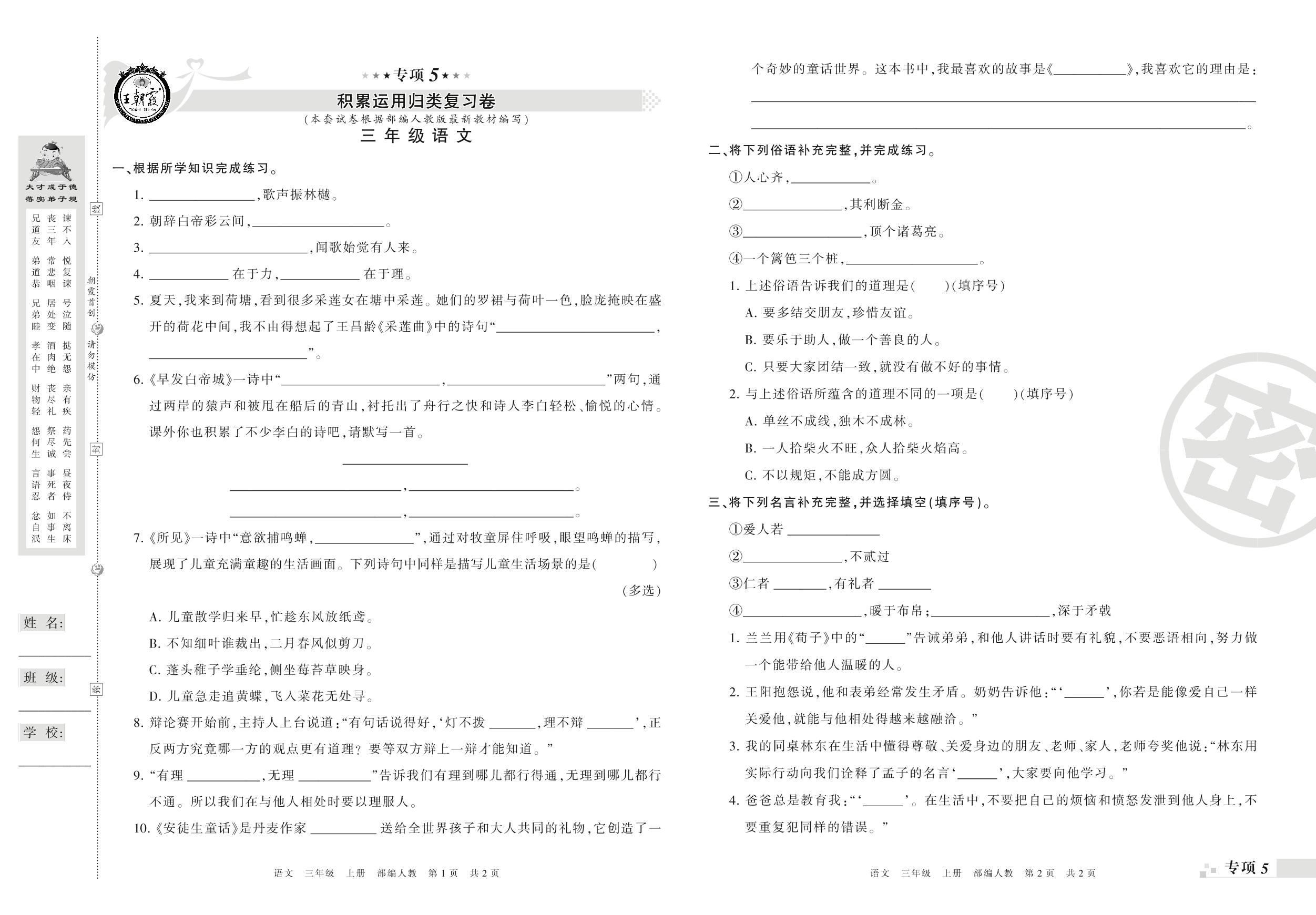 三年级语文人教版上册专项卷