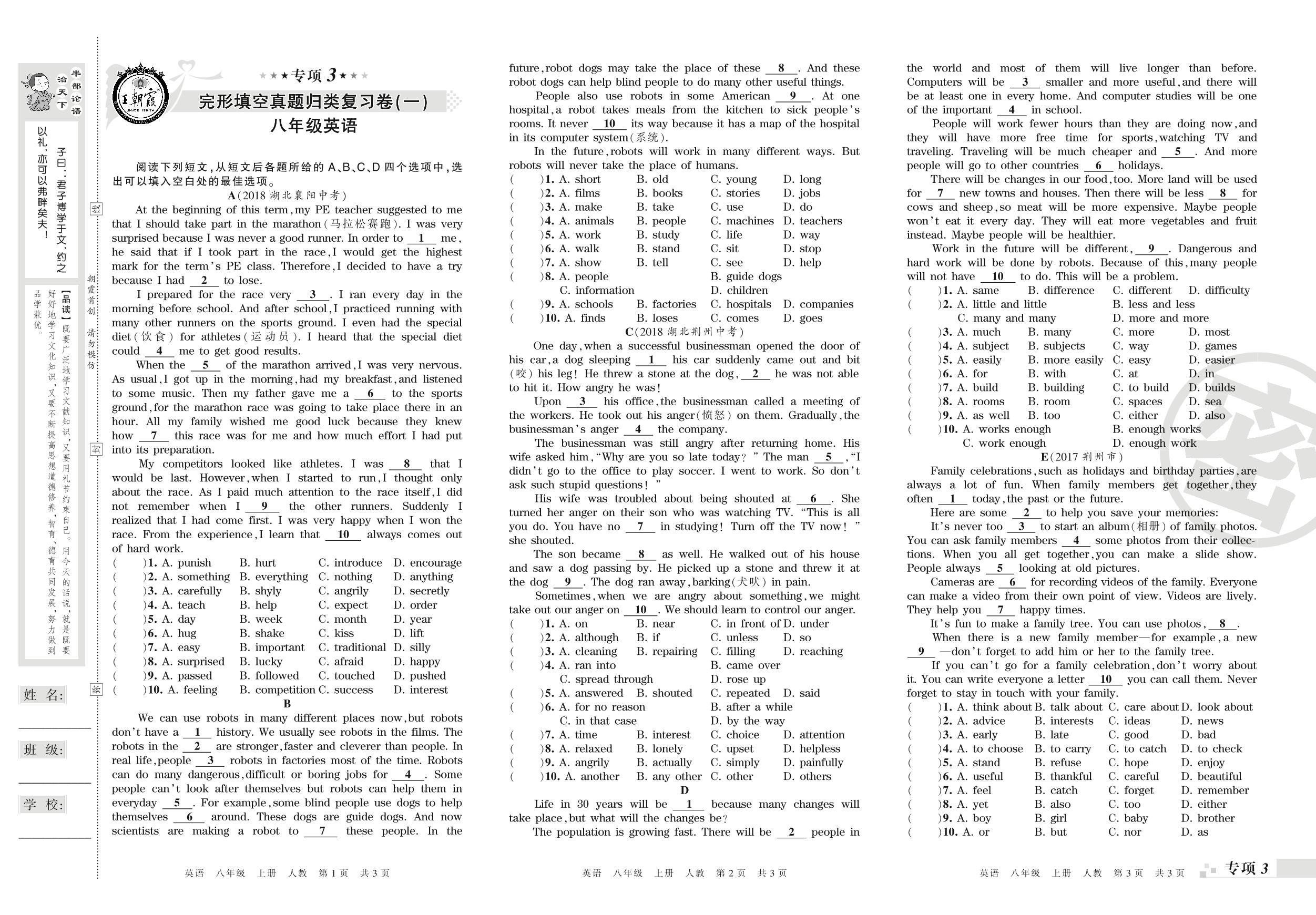 王朝霞期末专项卷——完形填空(一)(二)真题归类复习卷八年级上册英语(人教版)_R210809125140【0】