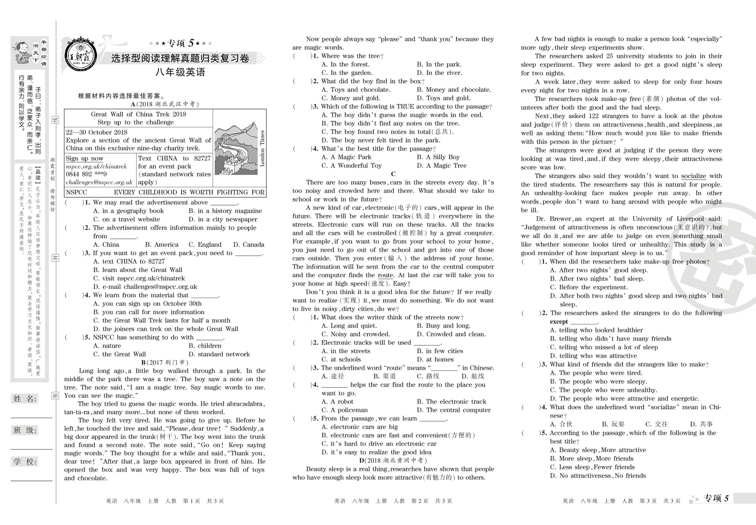 王朝霞期末专项卷——选择型阅读理解、任务型阅读理解真题归类复习卷八年级上册英语(人教版)_R210809125147【0】