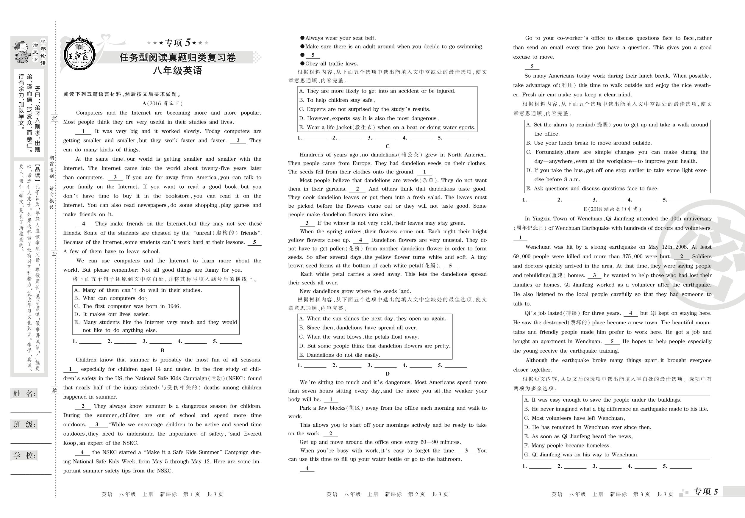王朝霞期末专项卷——任务型阅读、词语运用真题归类复习卷八年级上册英语(新课版)_R210809125234【0】