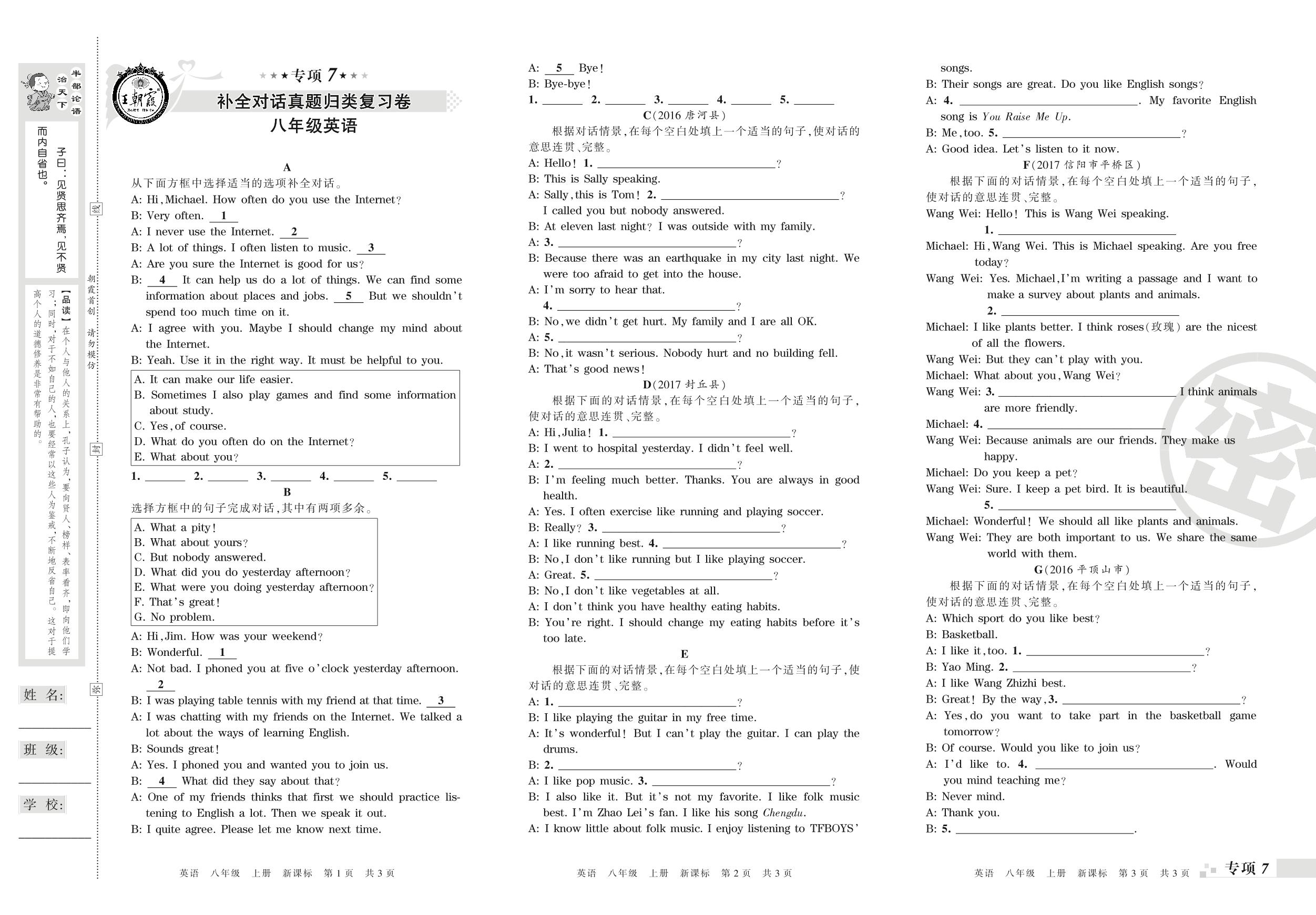 王朝霞期末专项卷——补全对话、书面表达真题归类复习卷八年级上册英语(新课版)_R210809125251【0】
