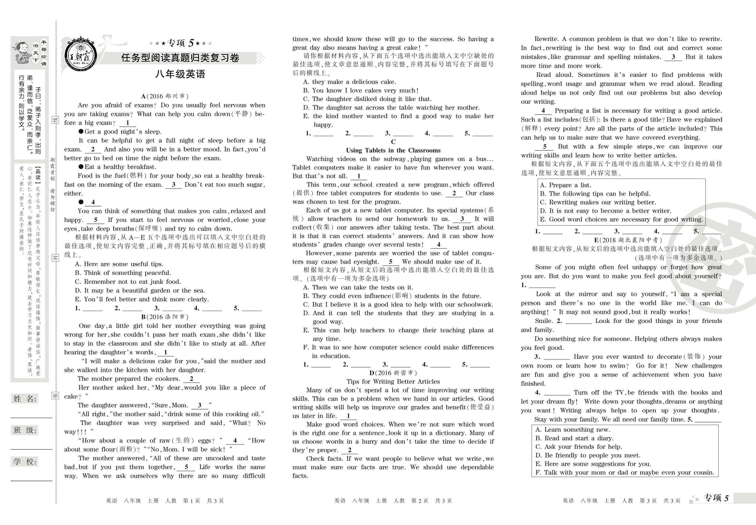 王朝霞期末专项卷——任务型阅读、词语运用真题归类复习卷八年级上册英语(人教版)_R210809125648【0】