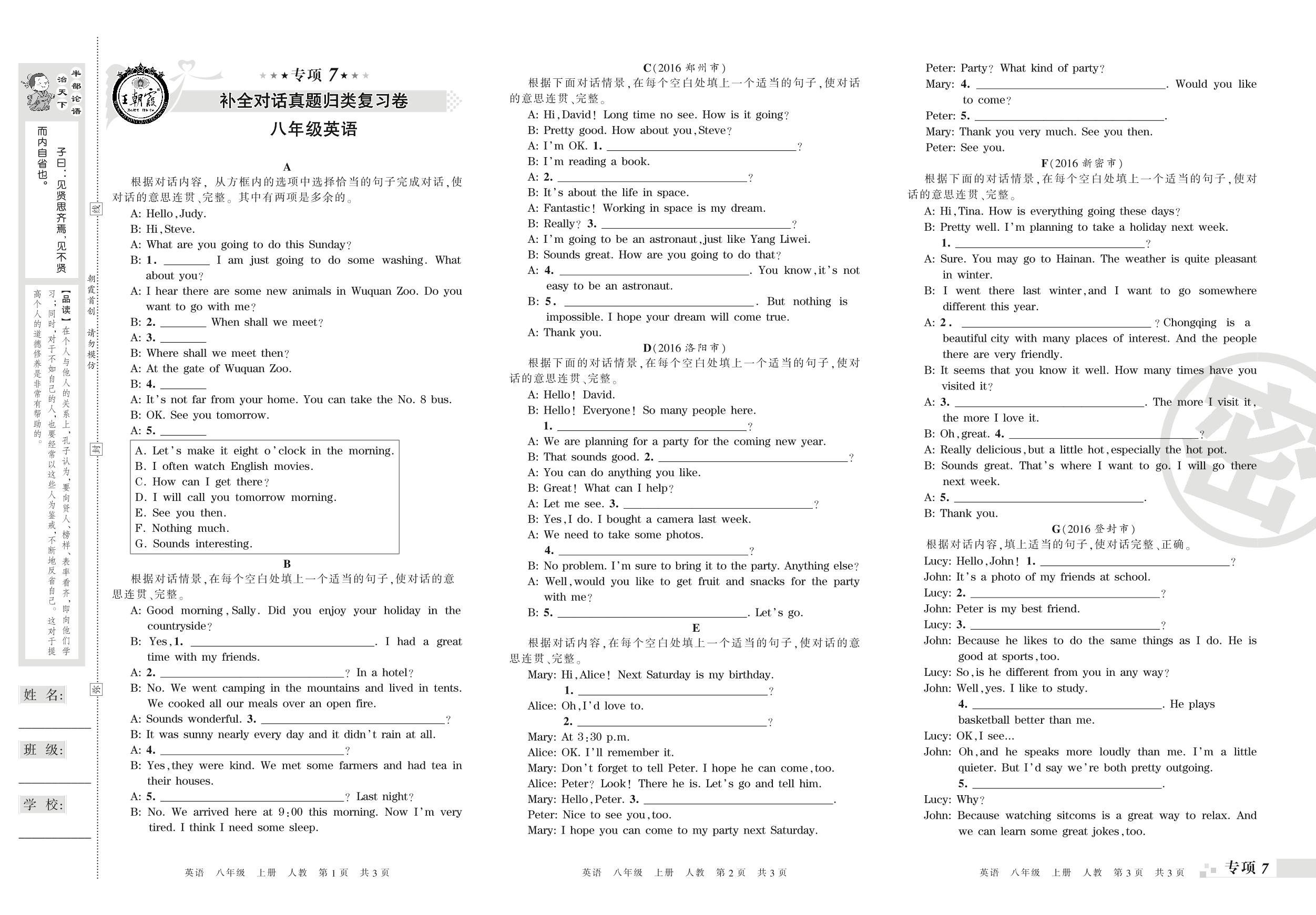 王朝霞期末专项卷——补全对话、书面表达真题归类复习卷八年级上册英语(人教版)_R210809125703【0】