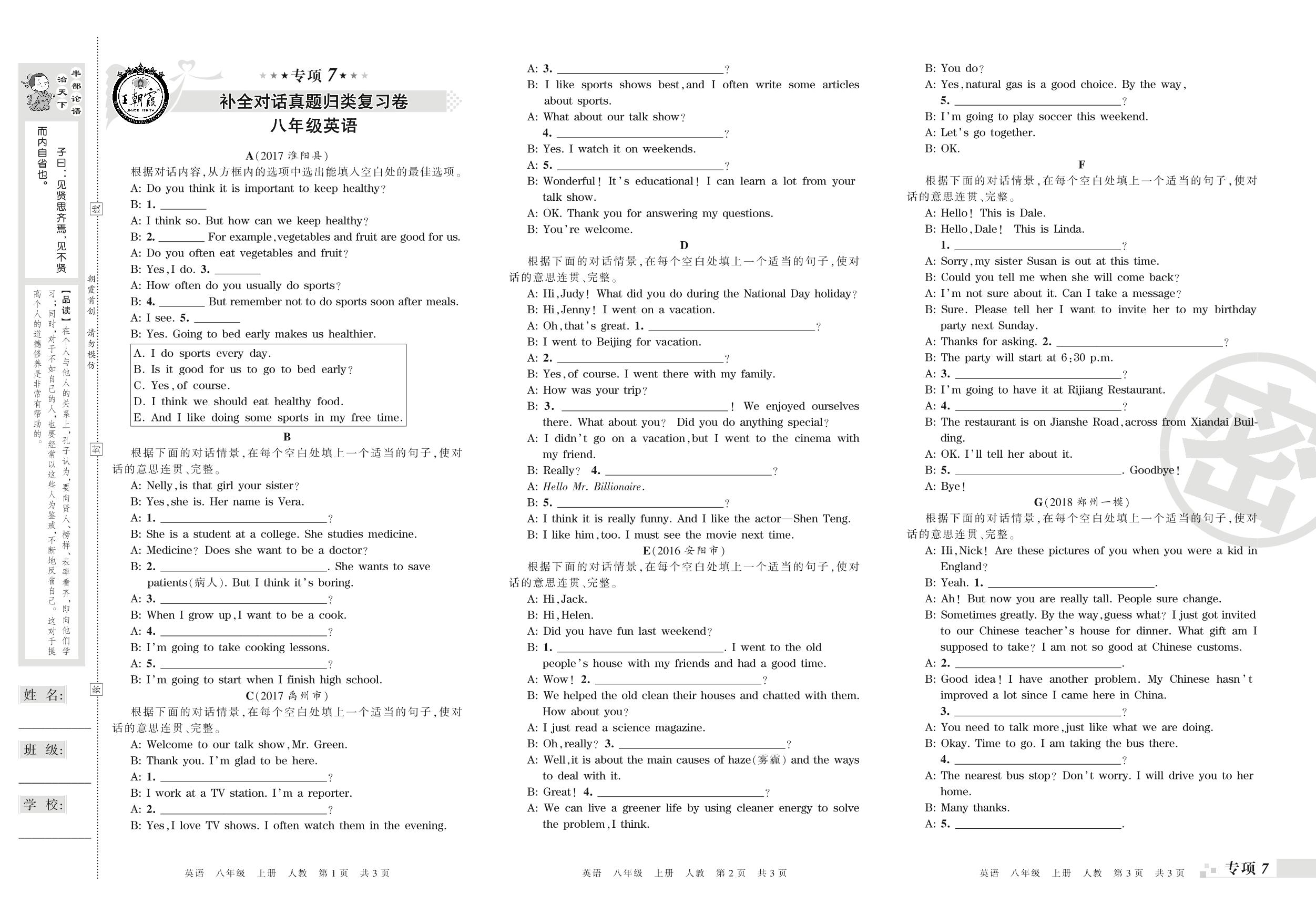 王朝霞期末专项卷——补全对话、书面表达真题归类复习卷八年级上册英语(人教版)_R210809130002【0】