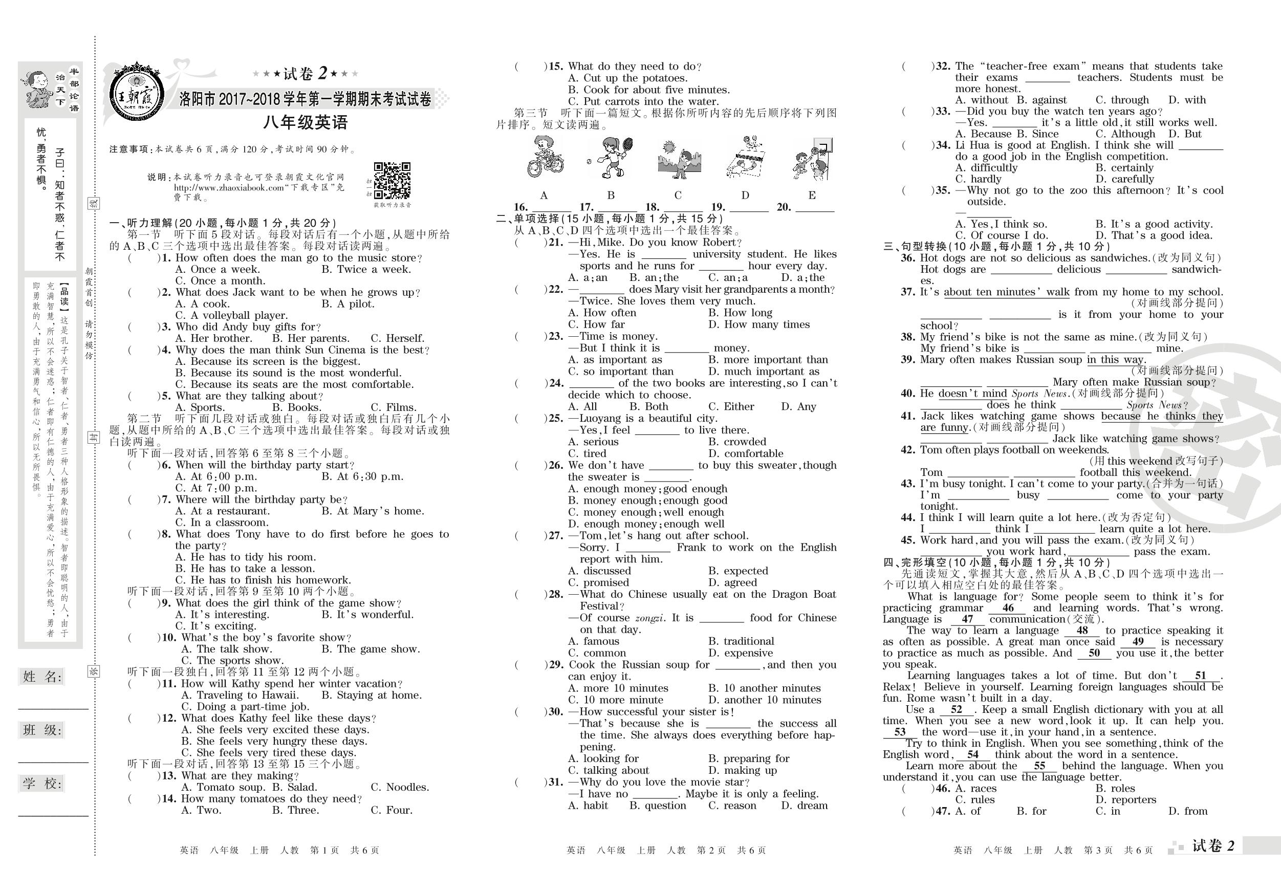 2017-2018学年第一学期洛阳市八年级英语试卷(人教版)_R210809130013【2】