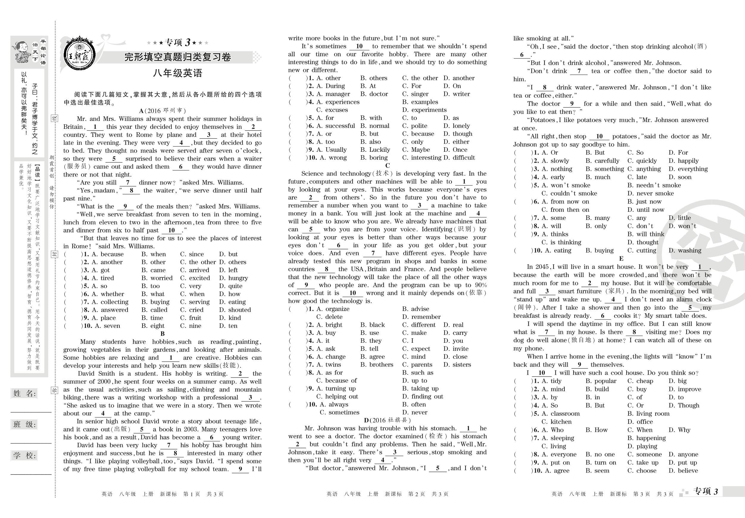 王朝霞期末专项卷——完形填空、选择型阅读真题归纳复习卷八年级上册英语(新课版)_R210809130126【0】