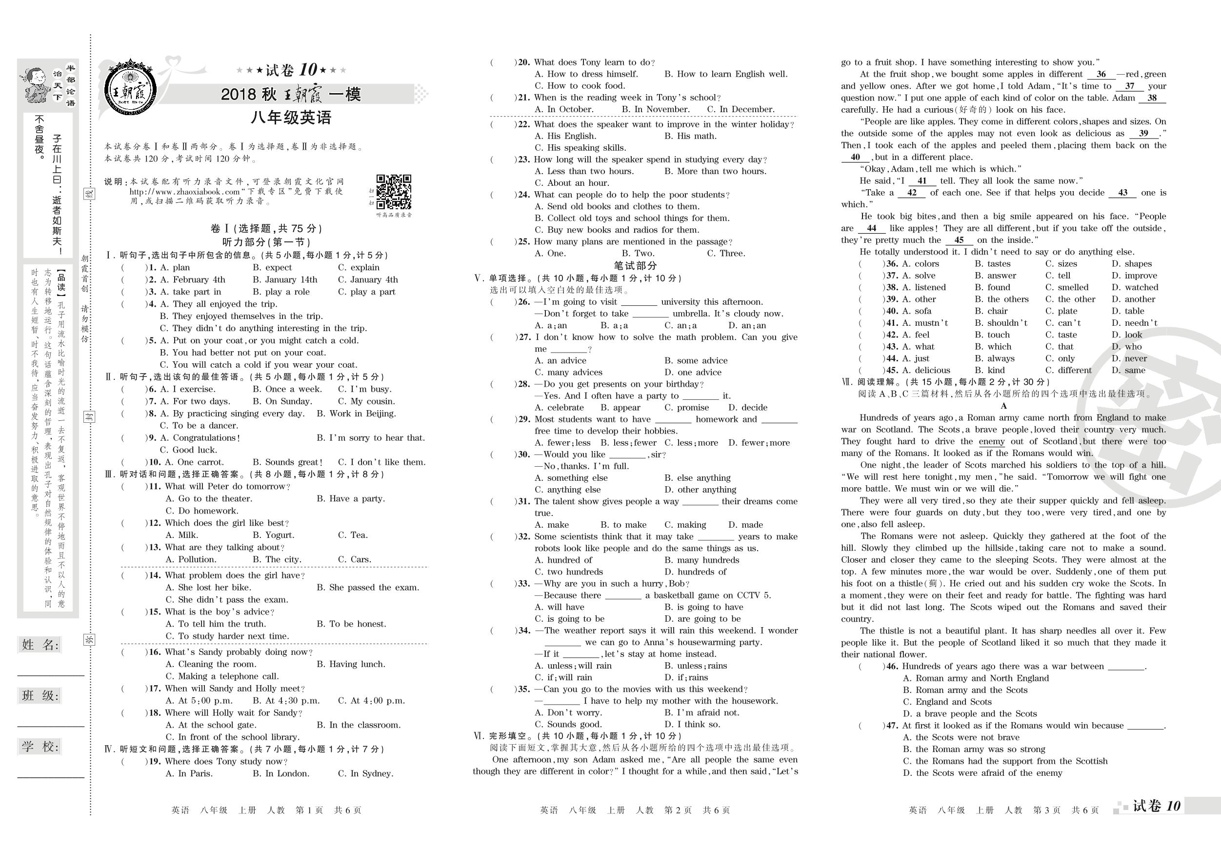 王朝霞期末模拟卷八年级上册英语(人教版)_R210809130420【10】