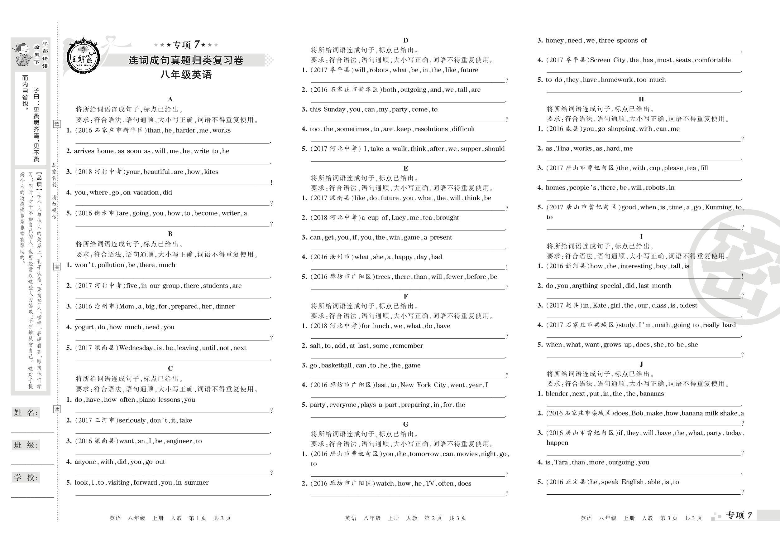 王朝霞期末专项卷——连词成句、书面表达真题归类复习卷八年级上册英语(人教版)_R210809130549【0】
