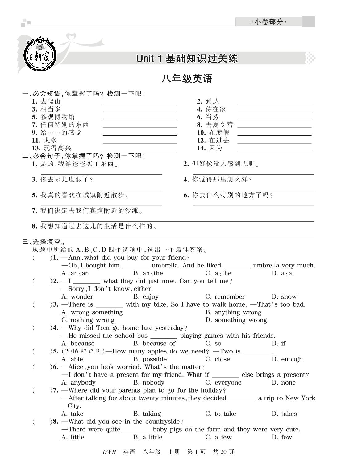 王朝霞期末小卷——基础知识过关练八年级上册英语(人教版)_R210809130947【0】