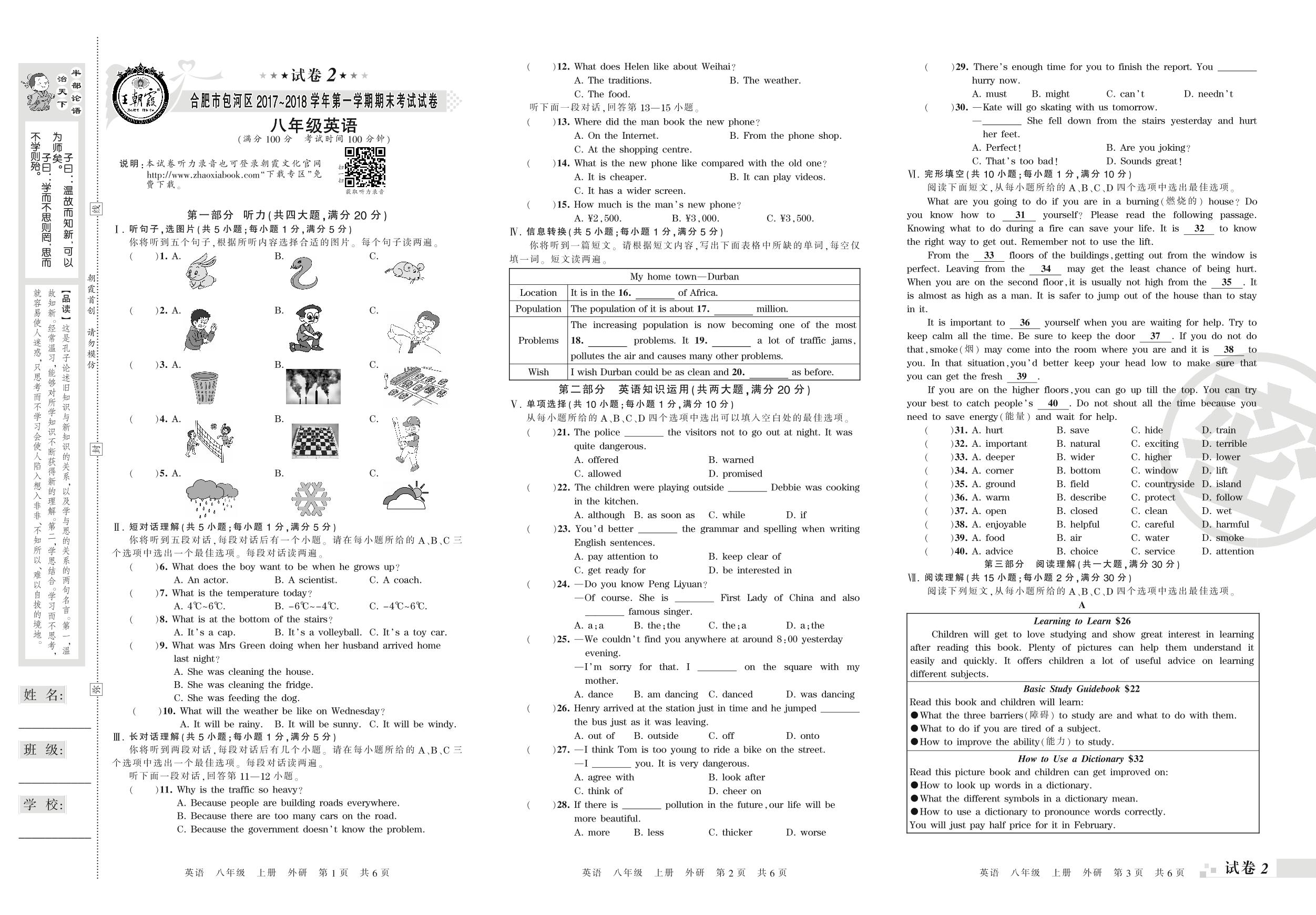 2017-2018学年第一学期合肥市包河区八年级英语试卷(外研版)【2】