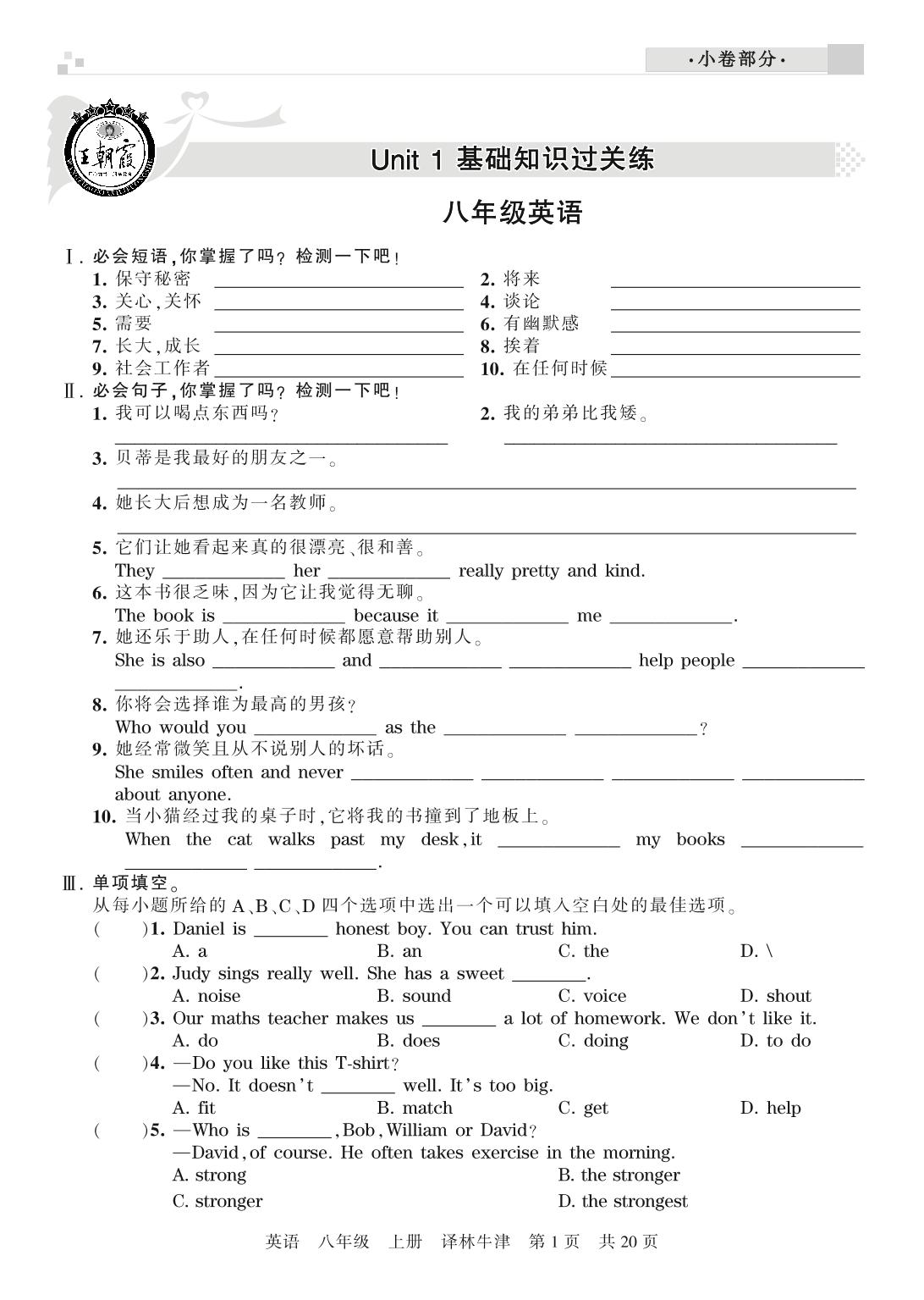 王朝霞期末小卷——基础知识过关练八年级上册英语(译林版)_R210809131725【0】