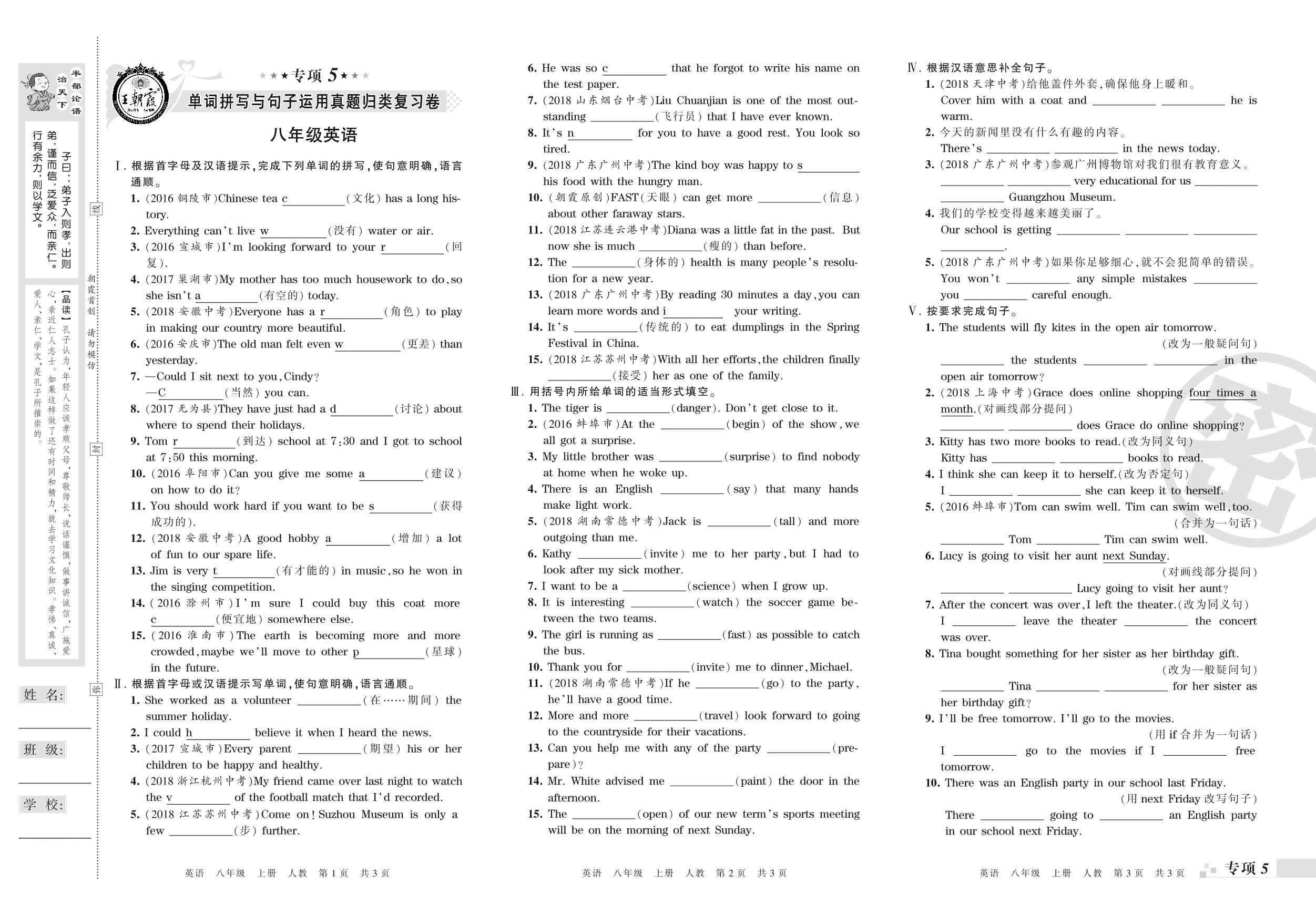 王朝霞期末专项卷——单词拼写与句子运用、书面表达真题归类复习卷八年级上册英语(人教版)_R210809131752【0】