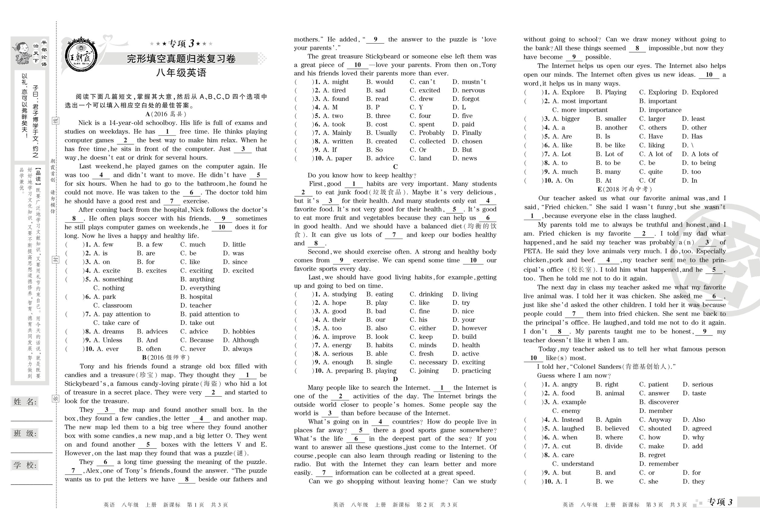 王朝霞期末专项卷——完形填空、选择型阅读真题归类复习卷八年级上册英语(新课版)_R210809131906【0】