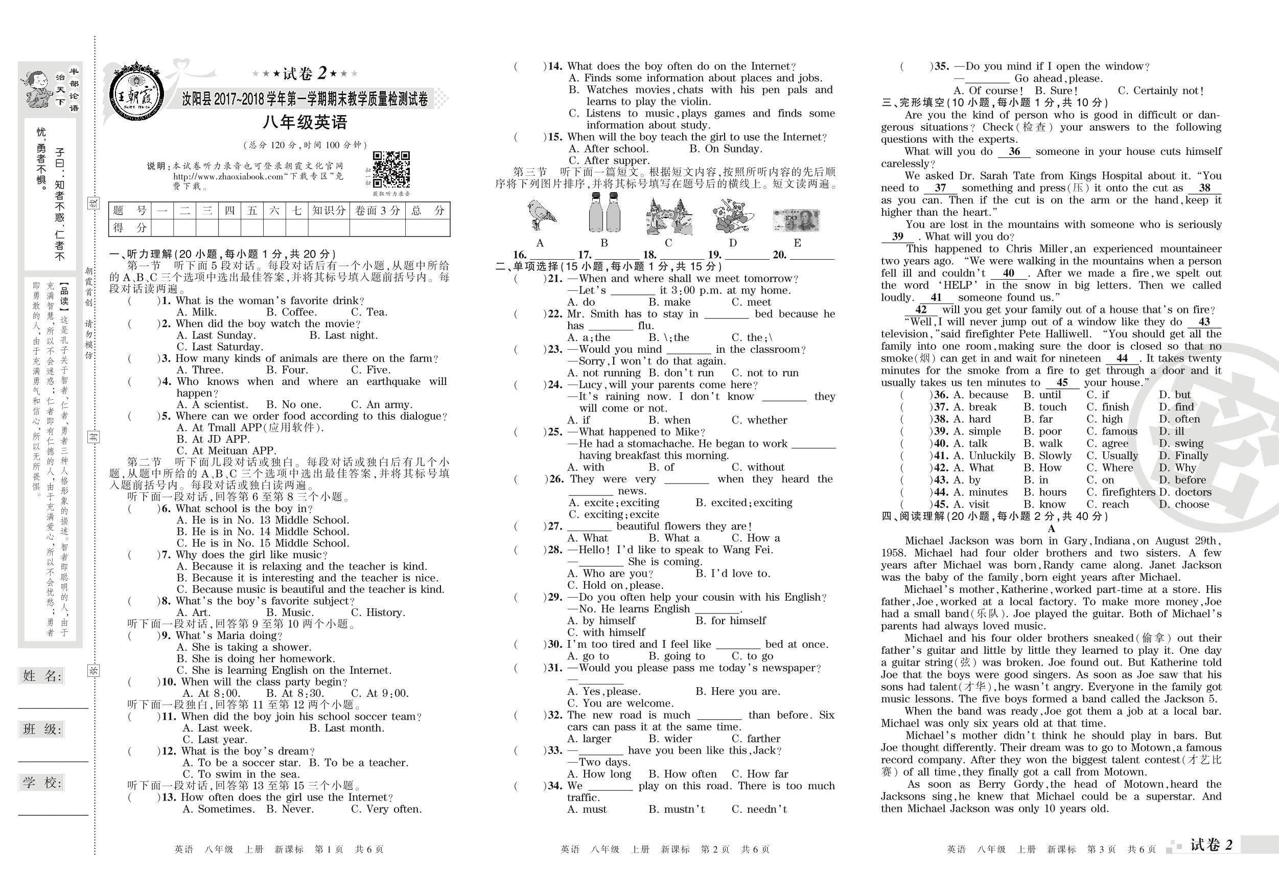 2017-2018学年第一学期洛阳市汝阳县八年级英语试卷(新课版)【2】