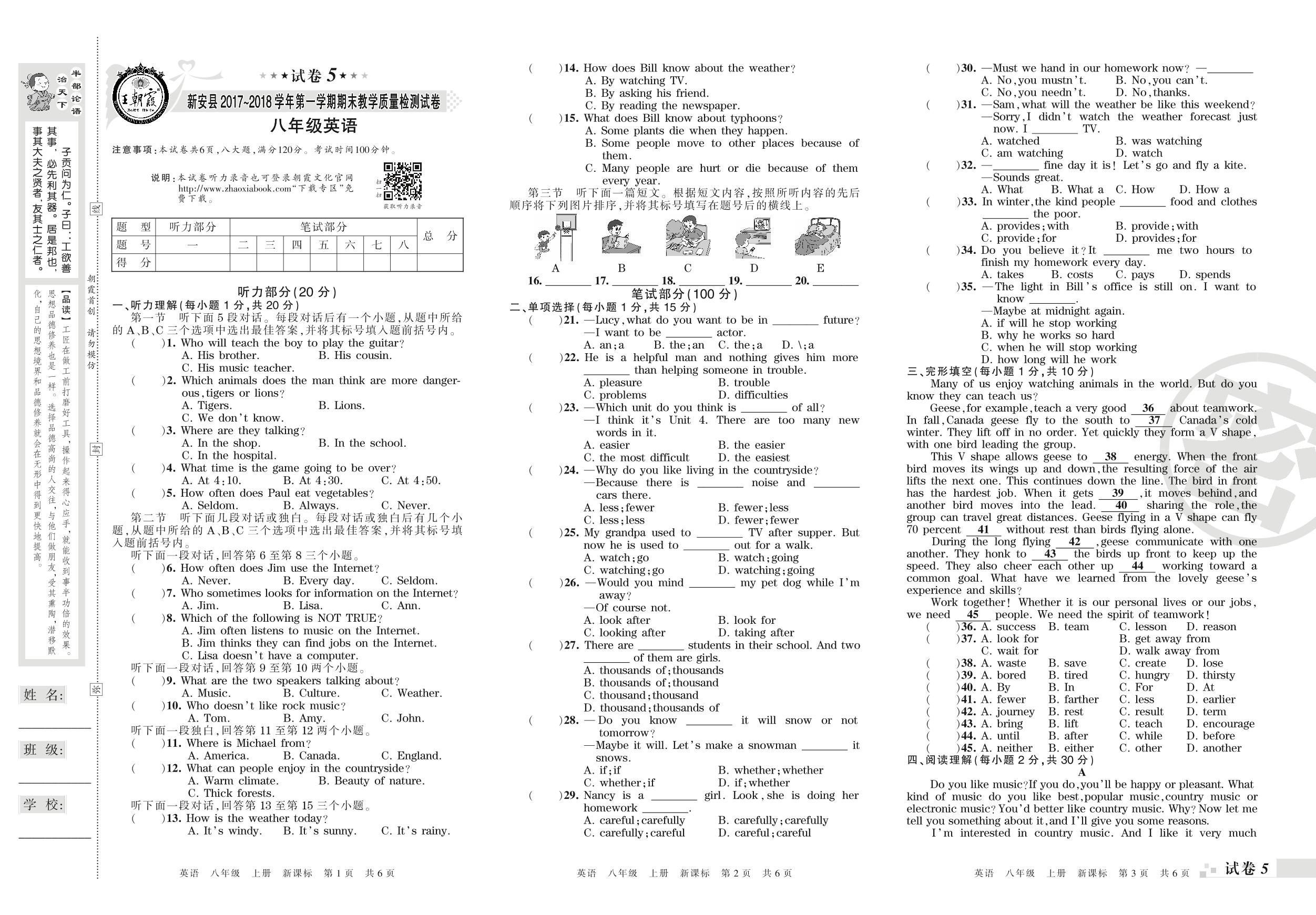 2017-2018学年第一学期洛阳市新安县八年级英语试卷(新课版)【5】