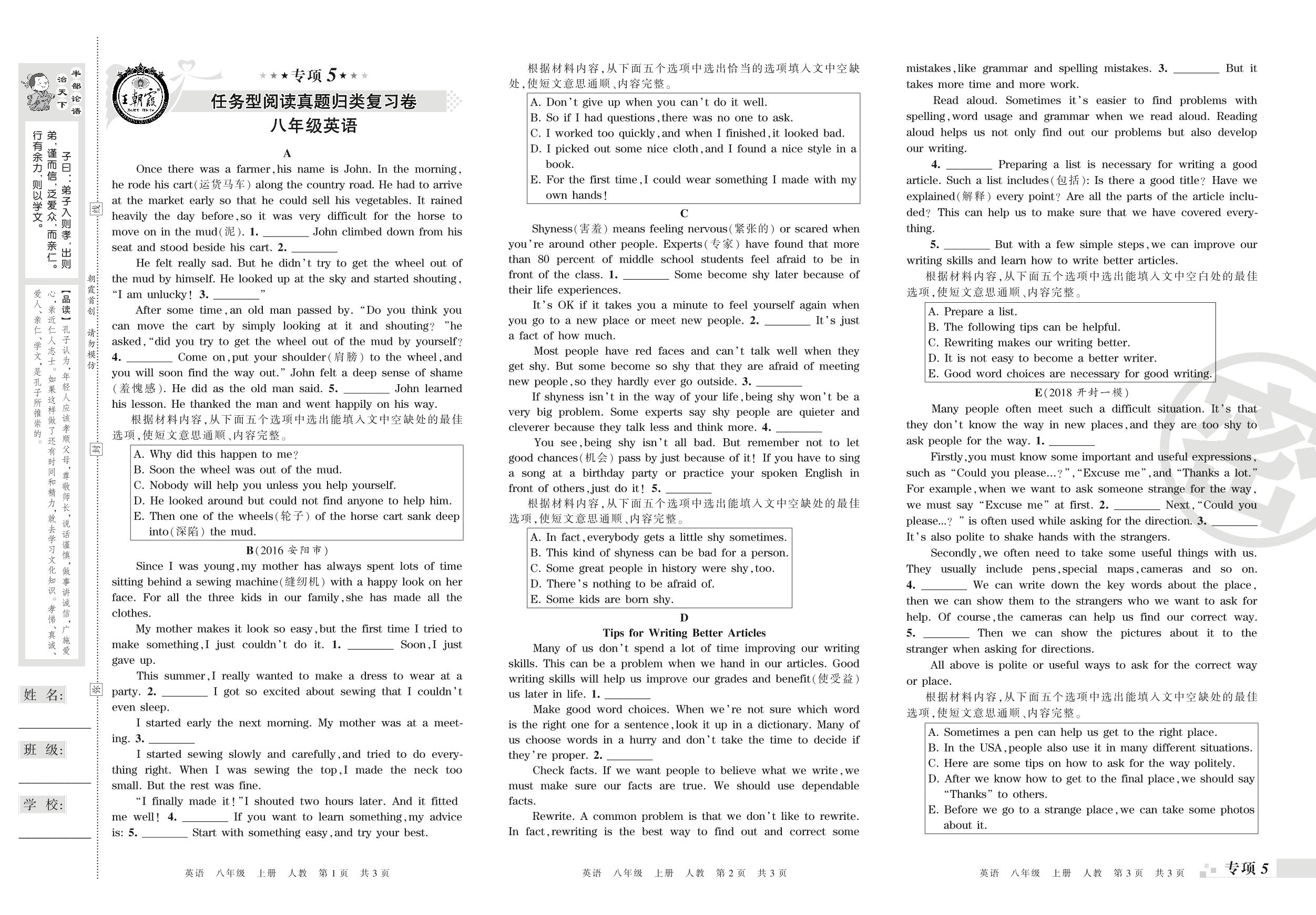 王朝霞期末专项卷——任务型阅读、词语运用真题归类复习卷八年级上册英语(人教版)_R210809132045【0】