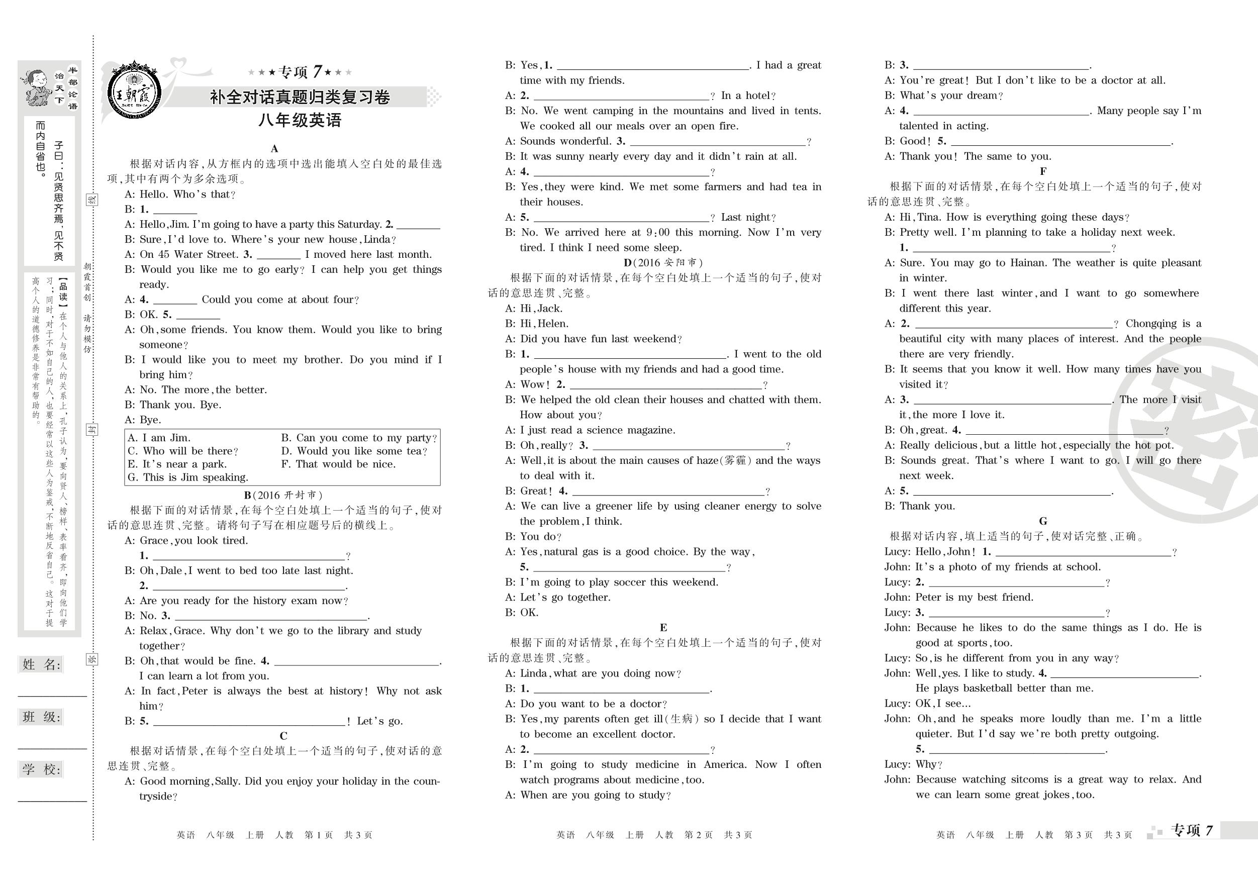 王朝霞期末专项卷——补全对话、书面表达真题归类复习卷八年级上册英语(人教版)_R210809132052【0】