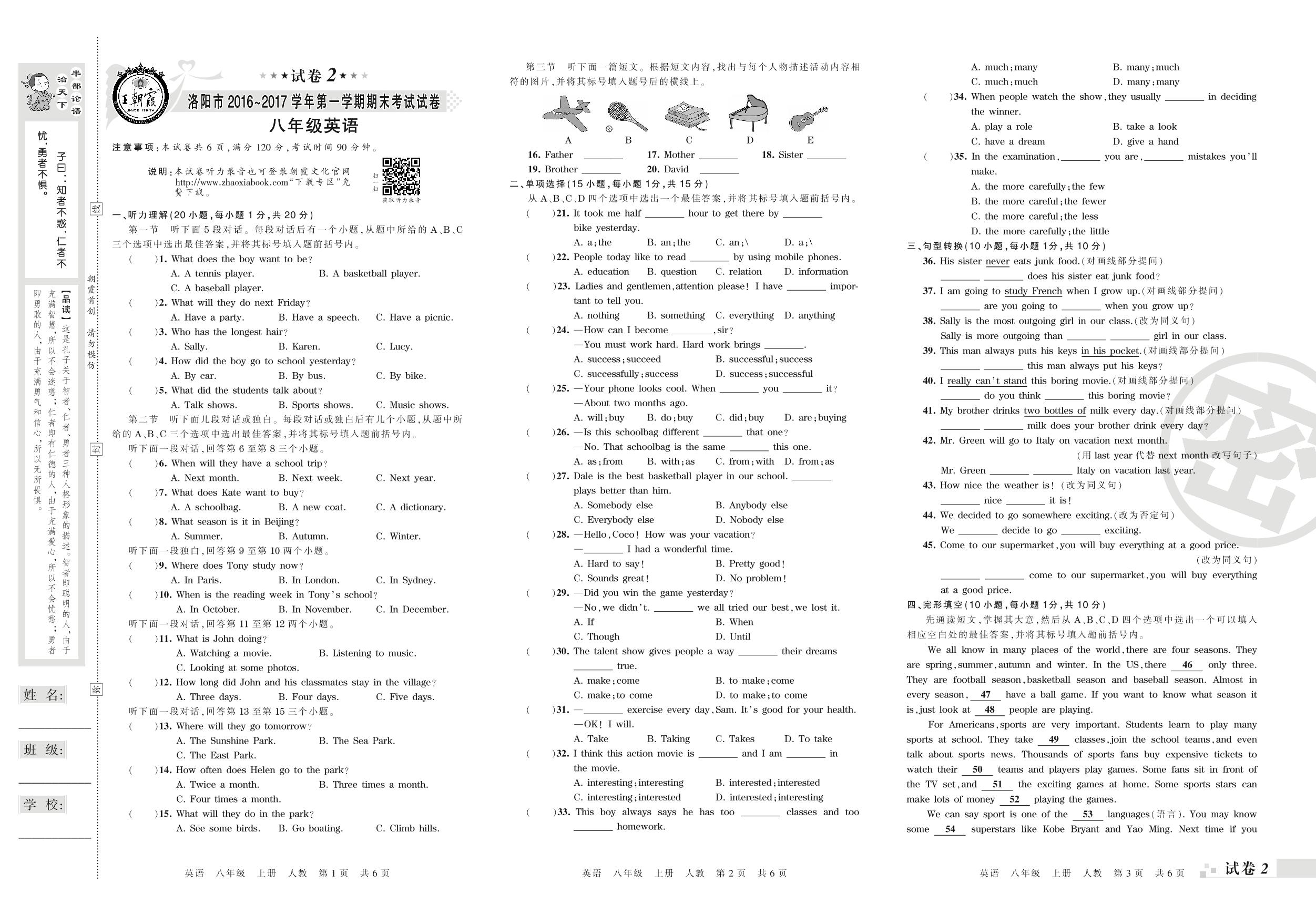 2016-2017学年第一学期洛阳市八年级英语试卷(人教版)【2】