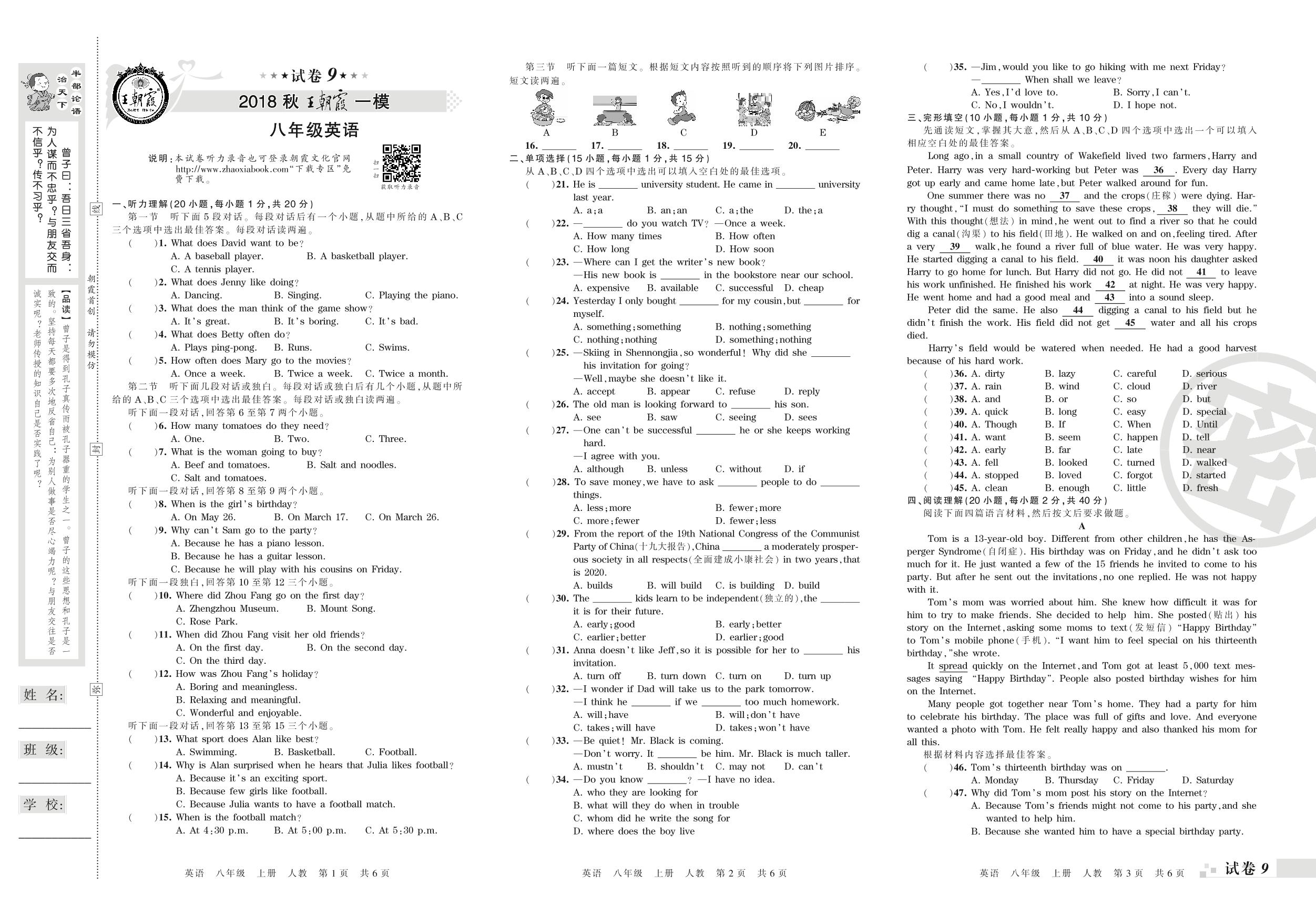 王朝霞期末模拟卷八年级上册英语(人教版)_R210809132312【9】