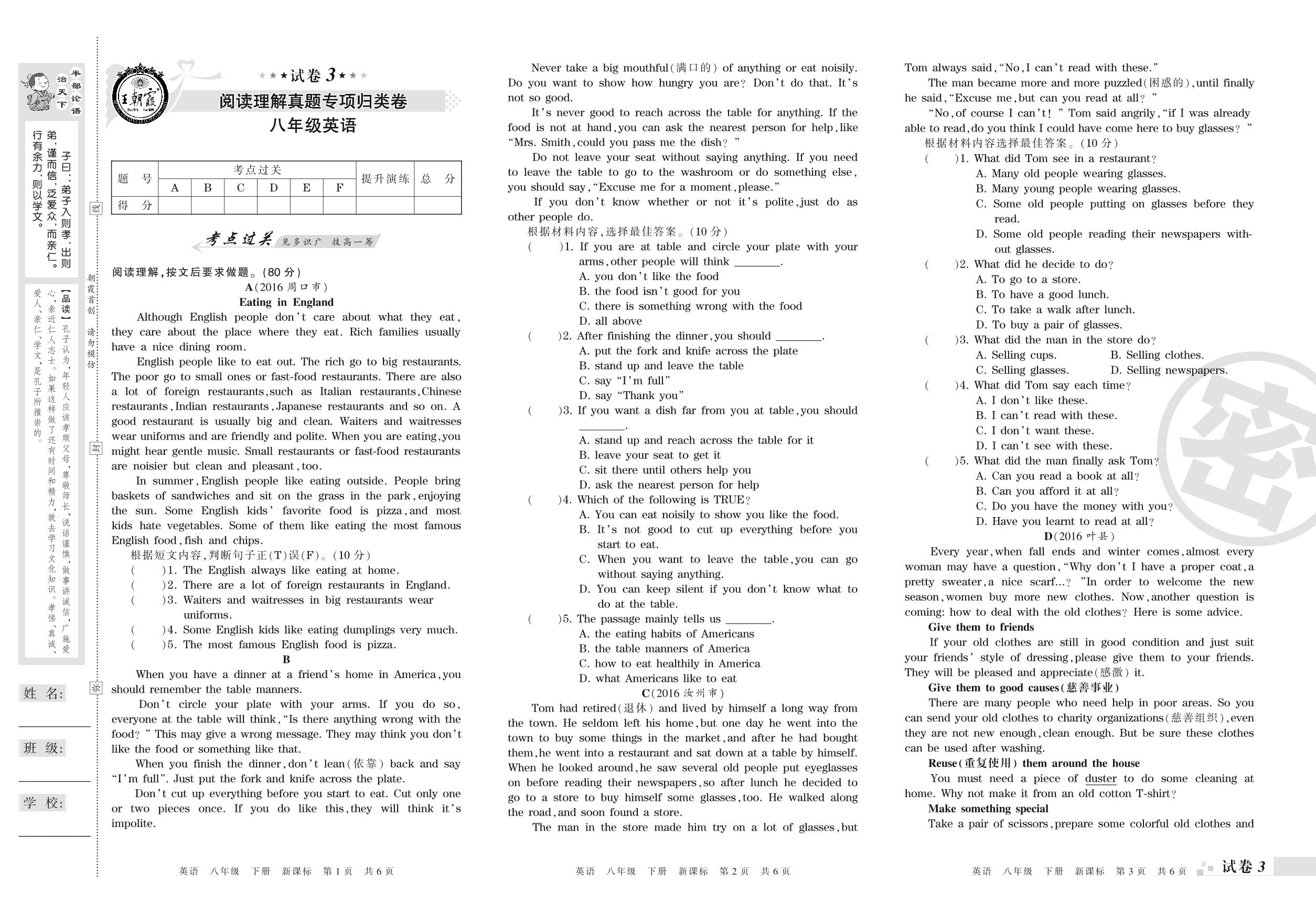 王朝霞期末专项卷——阅读理解真题专项归类卷八年级下册英语(新课版)_R210809132430【3】