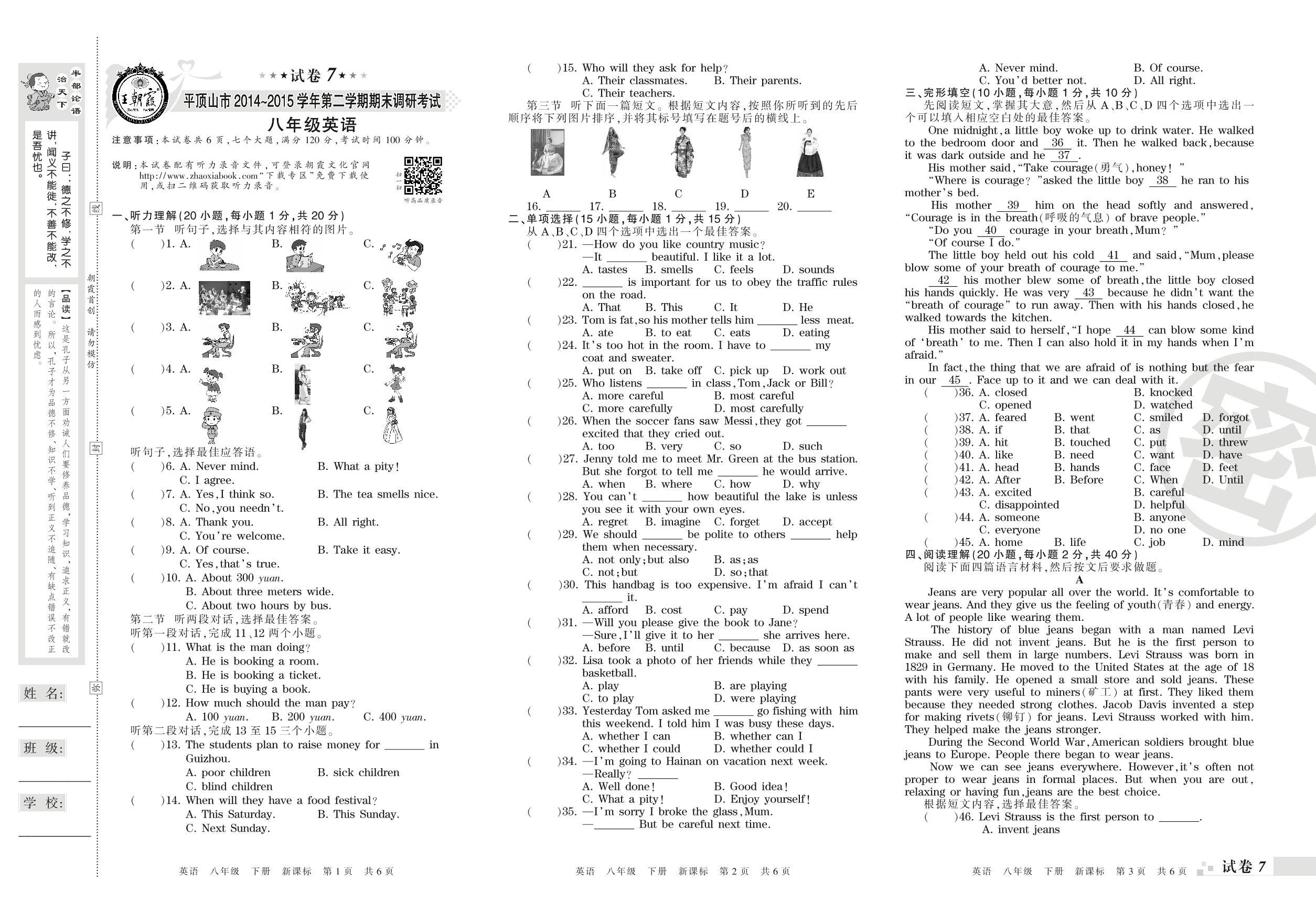 2014-2015学年第二学期平顶山市八年级英语试卷(新课版)【7】