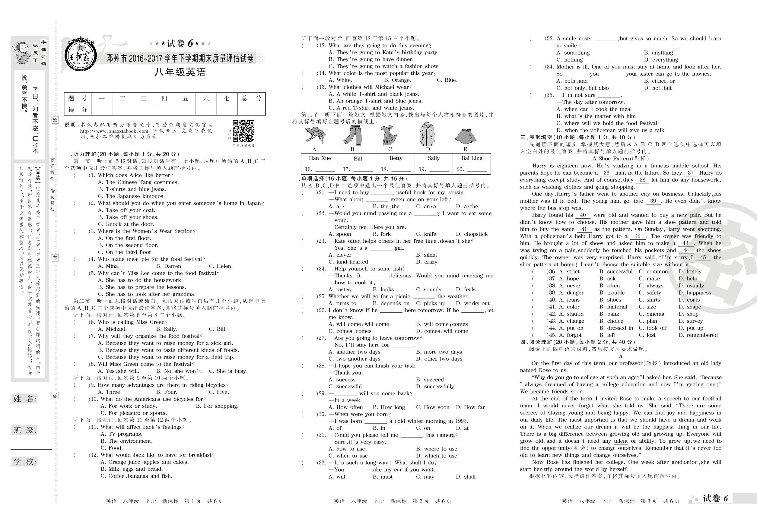 2016-2017学年第二学期邓州市八年级英语试卷(新课版)【6】