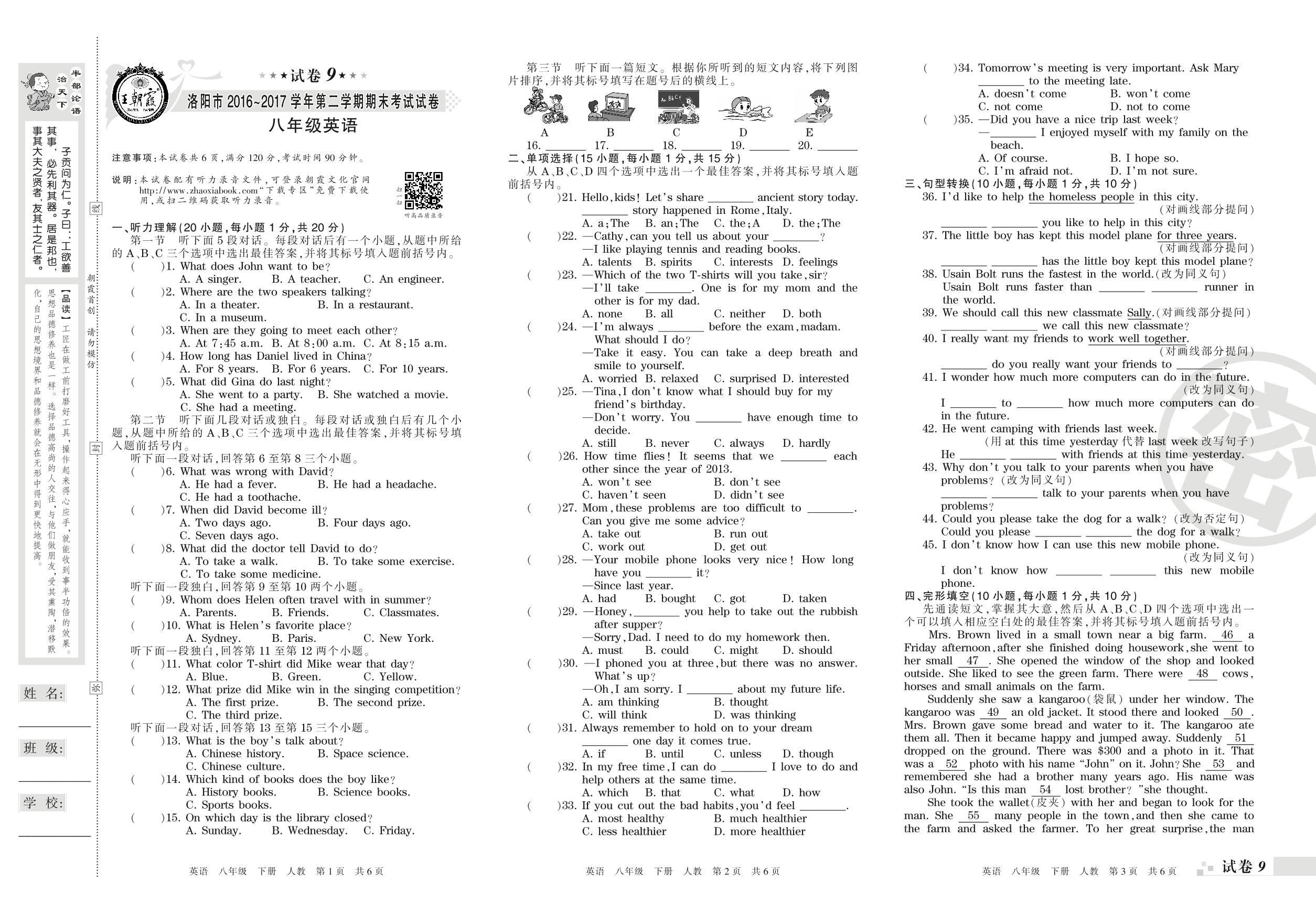 2016-2017学年第二学期洛阳市八年级英语试卷(人教版)_R210809132821【9】