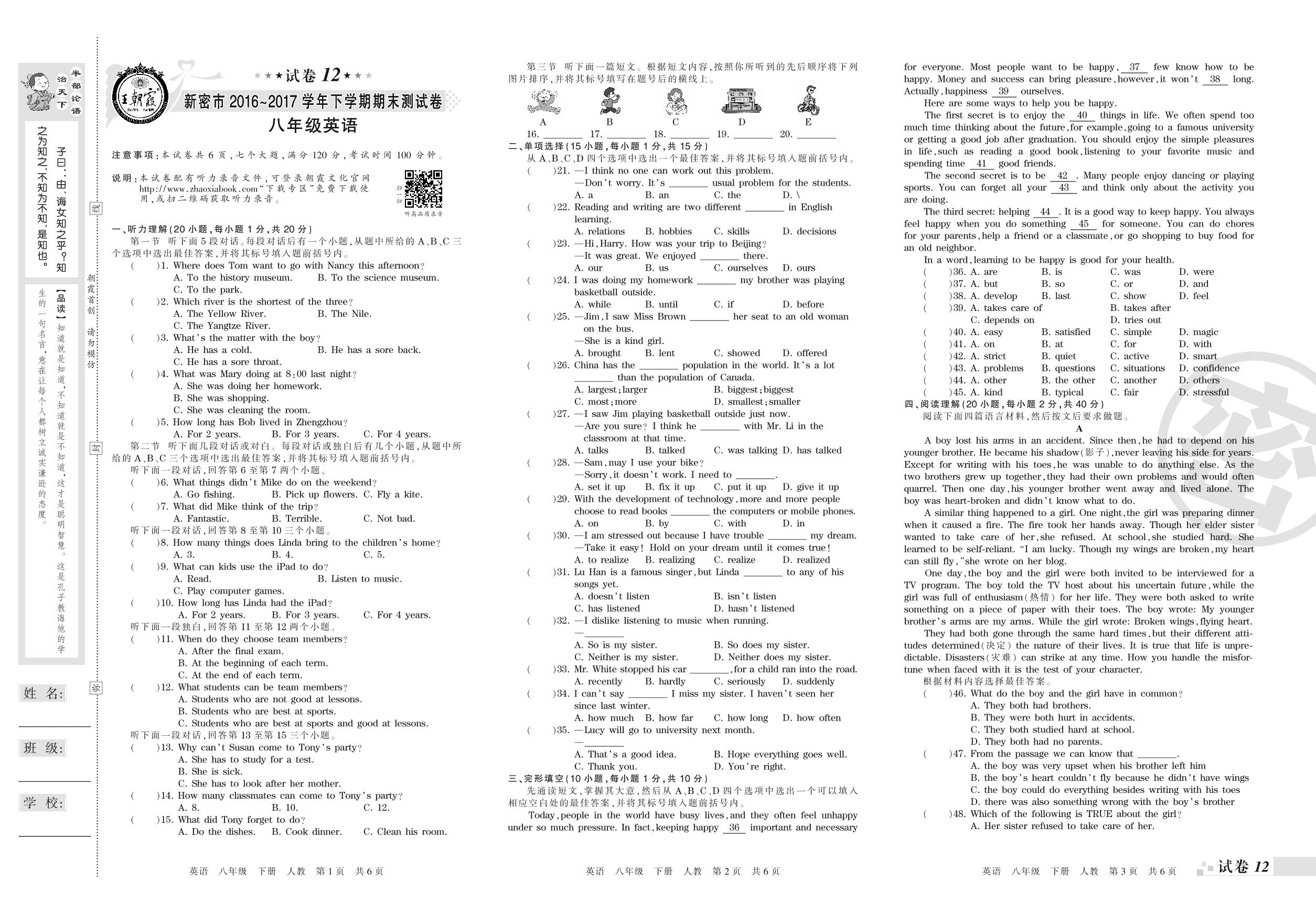 2016-2017学年第二学期新密市八年级英语试卷(人教版)【12】