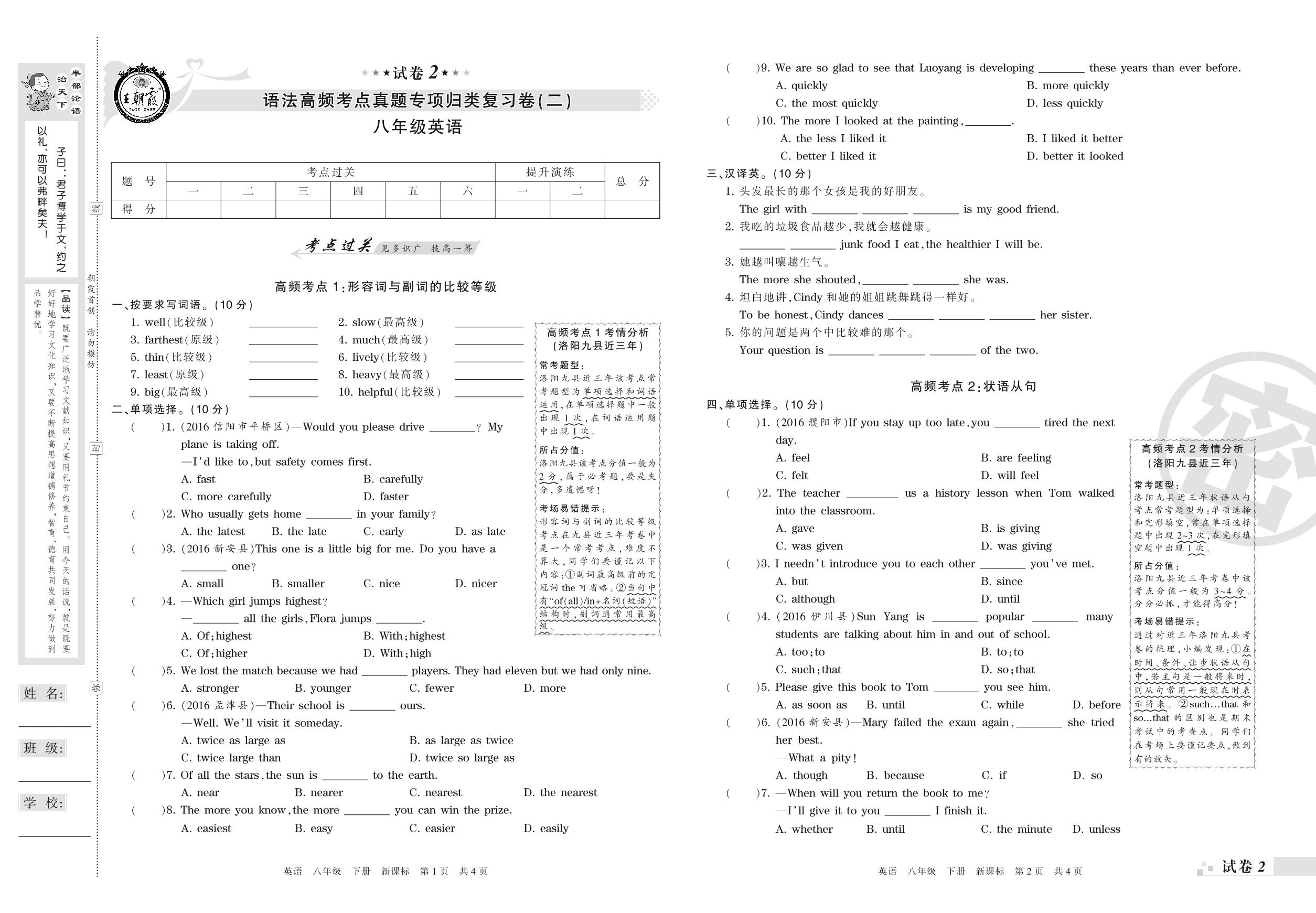 王朝霞期末专项卷——语法高频考点(二)真题专项归类复习卷八年级下册英语(新课版)_R210809132921【2】