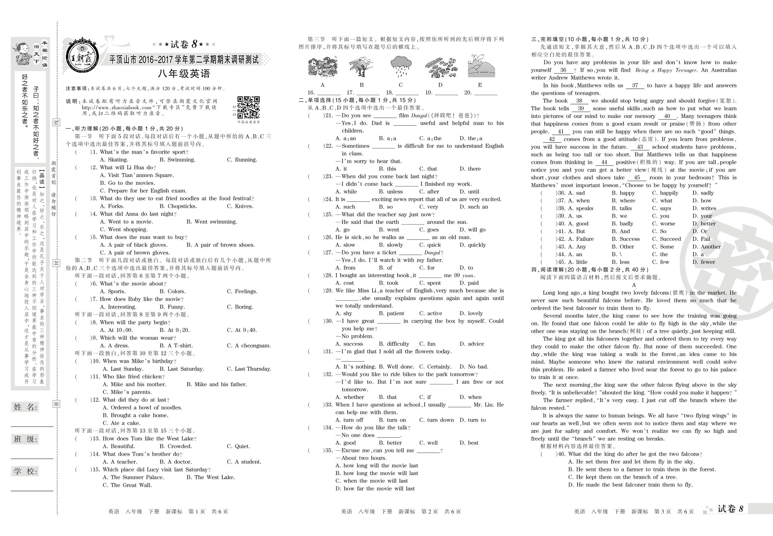 2016-2017学年第二学期平顶山市八年级英语试卷(新课版)【8】
