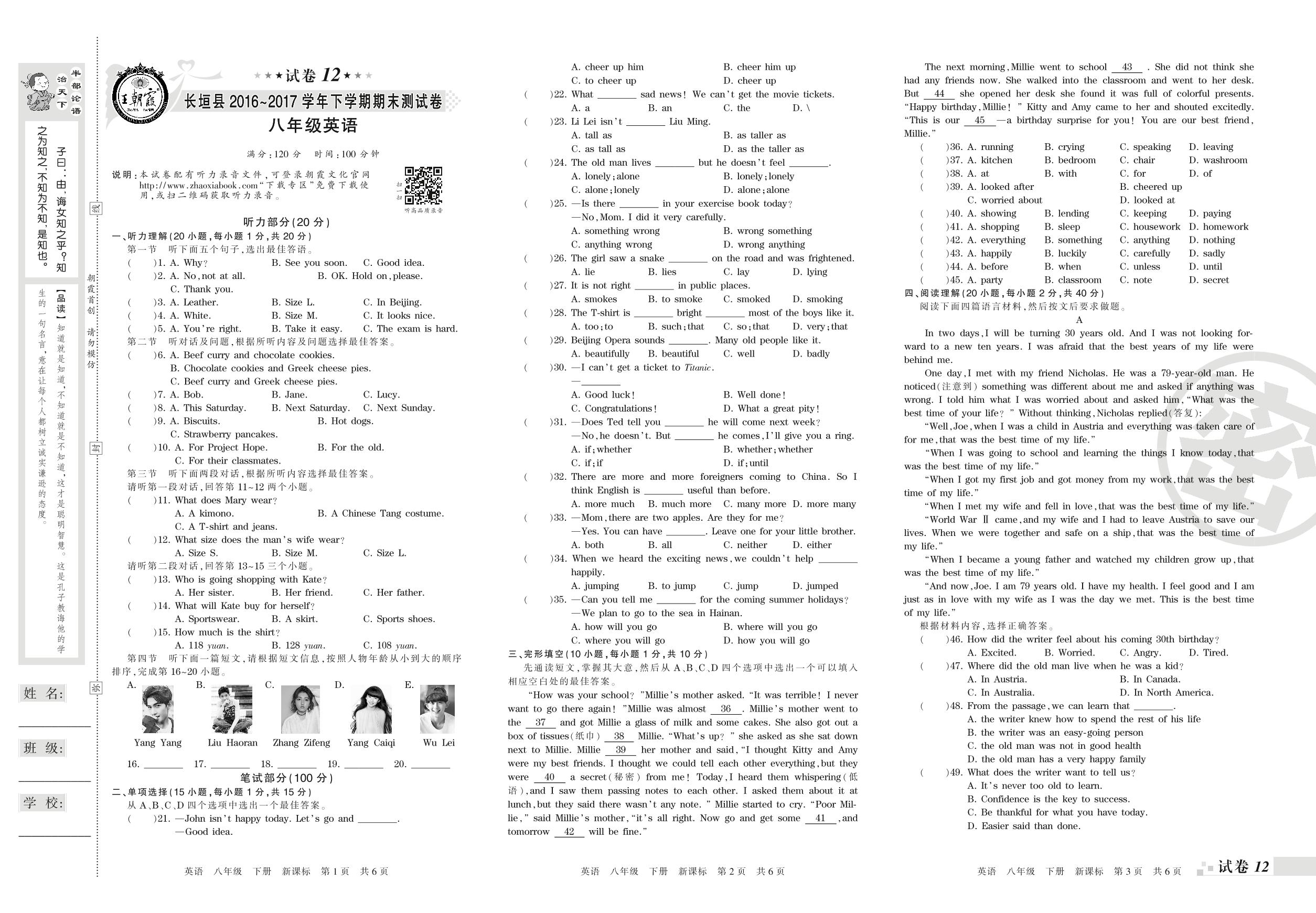 2016-2017学年第二学期新乡市长垣县八年级英语试卷(新课版)【12】