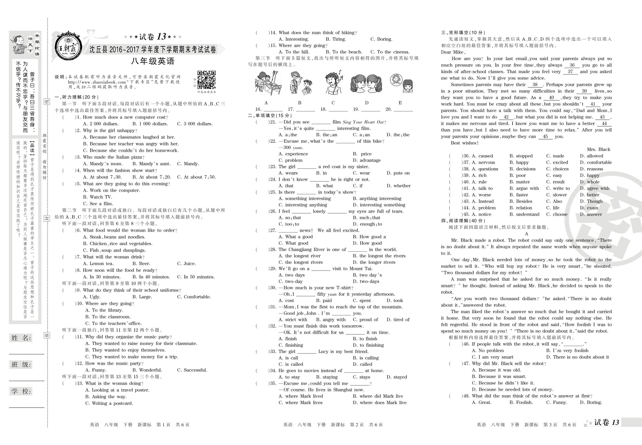2016-2017学年第二学期周口市沈丘县八年级英语试卷(新课版)【13】