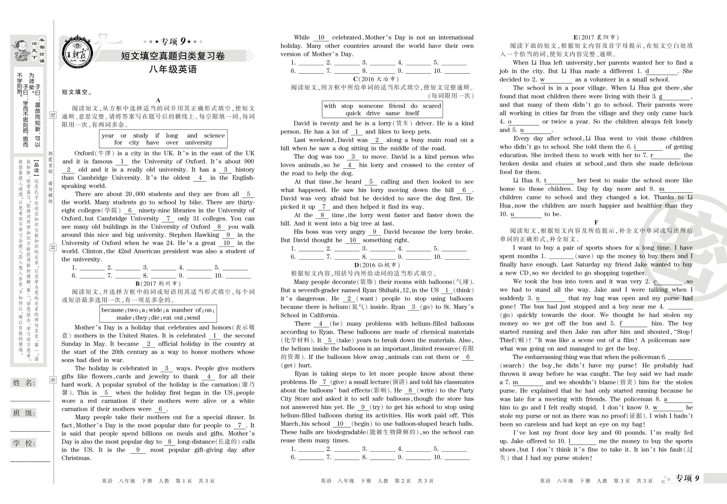 王朝霞期末专项卷——短文填空、书面表达真题归类复习卷八年级下册英语(人教版)_R210809134012【0】