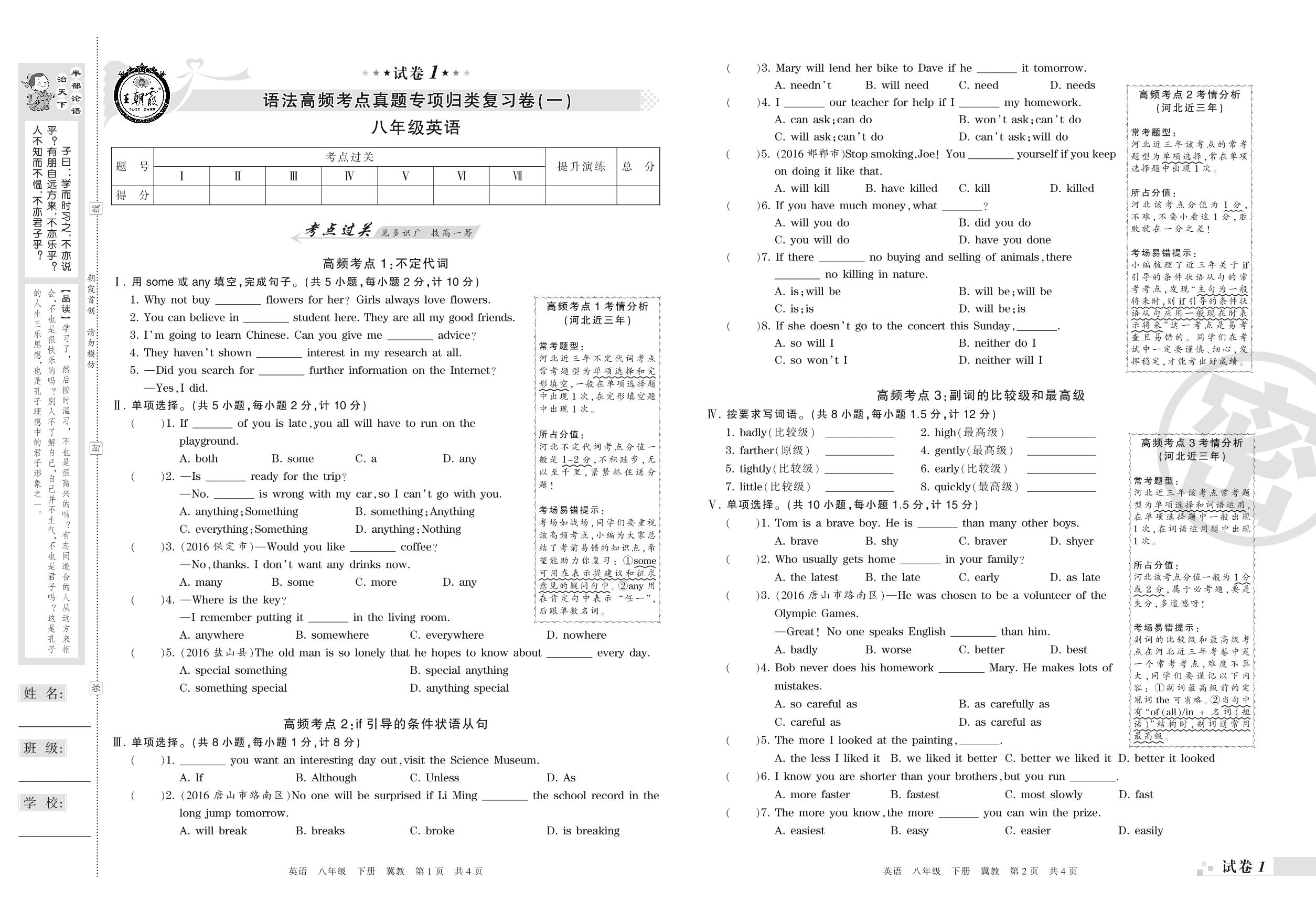 王朝霞期末专项卷——语法高频考点(一)真题专项归类复习卷八年级下册英语(冀教版)_R210809134529【1】
