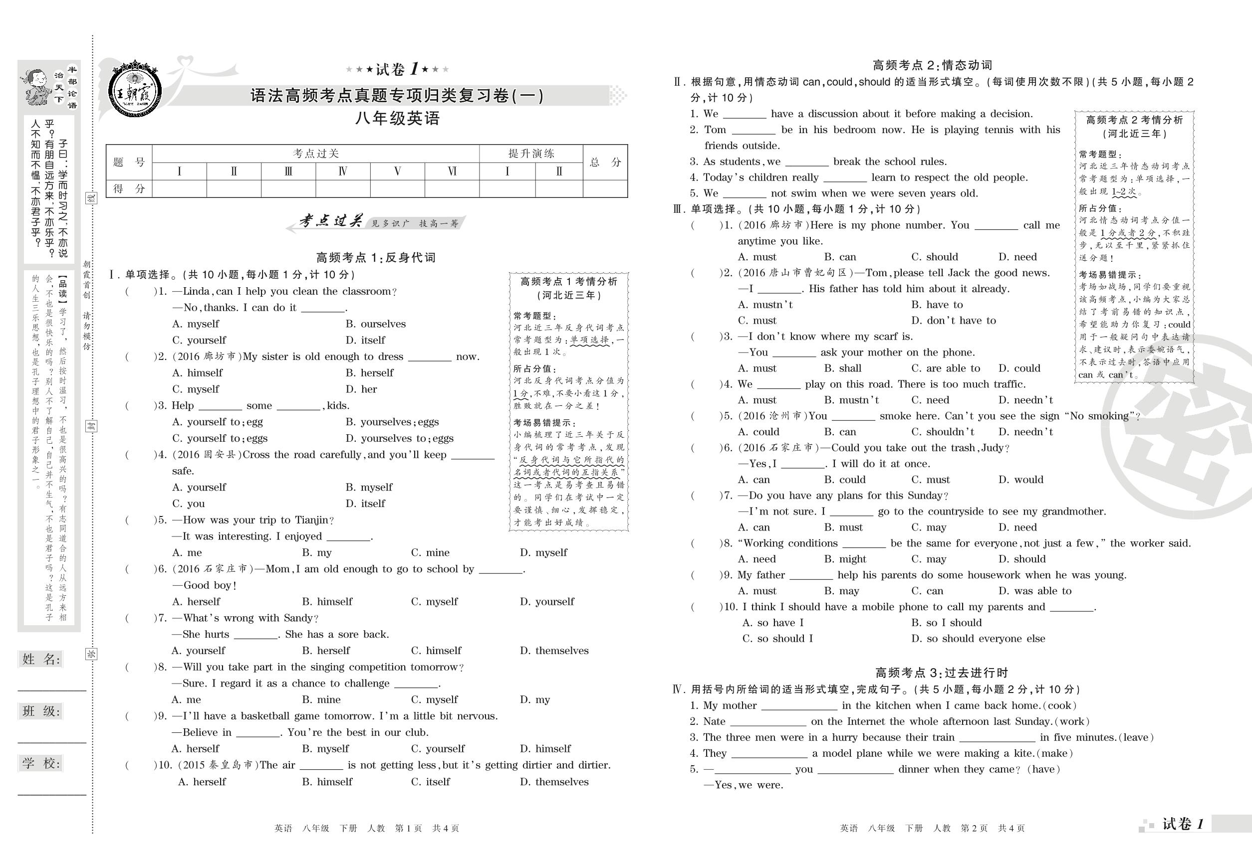 王朝霞期末专项卷——语法高频考点(一)真题专项归类复习卷八年级下册英语(人教版)_R210809134707【1】