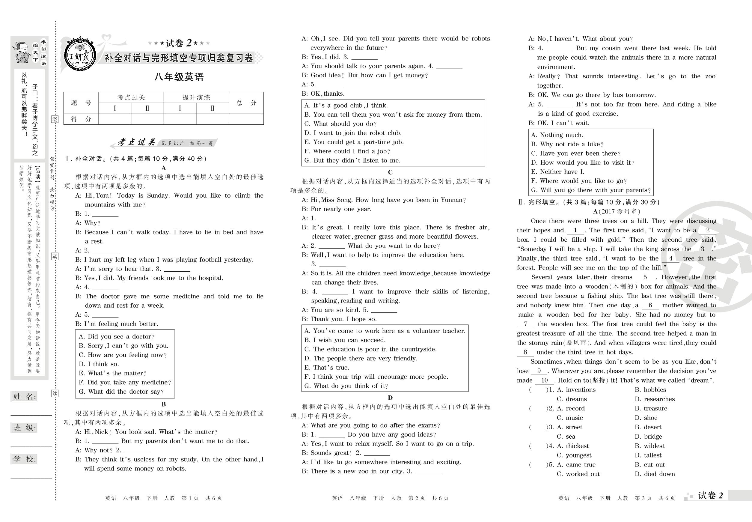 王朝霞期末专项卷——补全对话与完形填空专项归类复习卷八年级下册英语(人教版)【2】