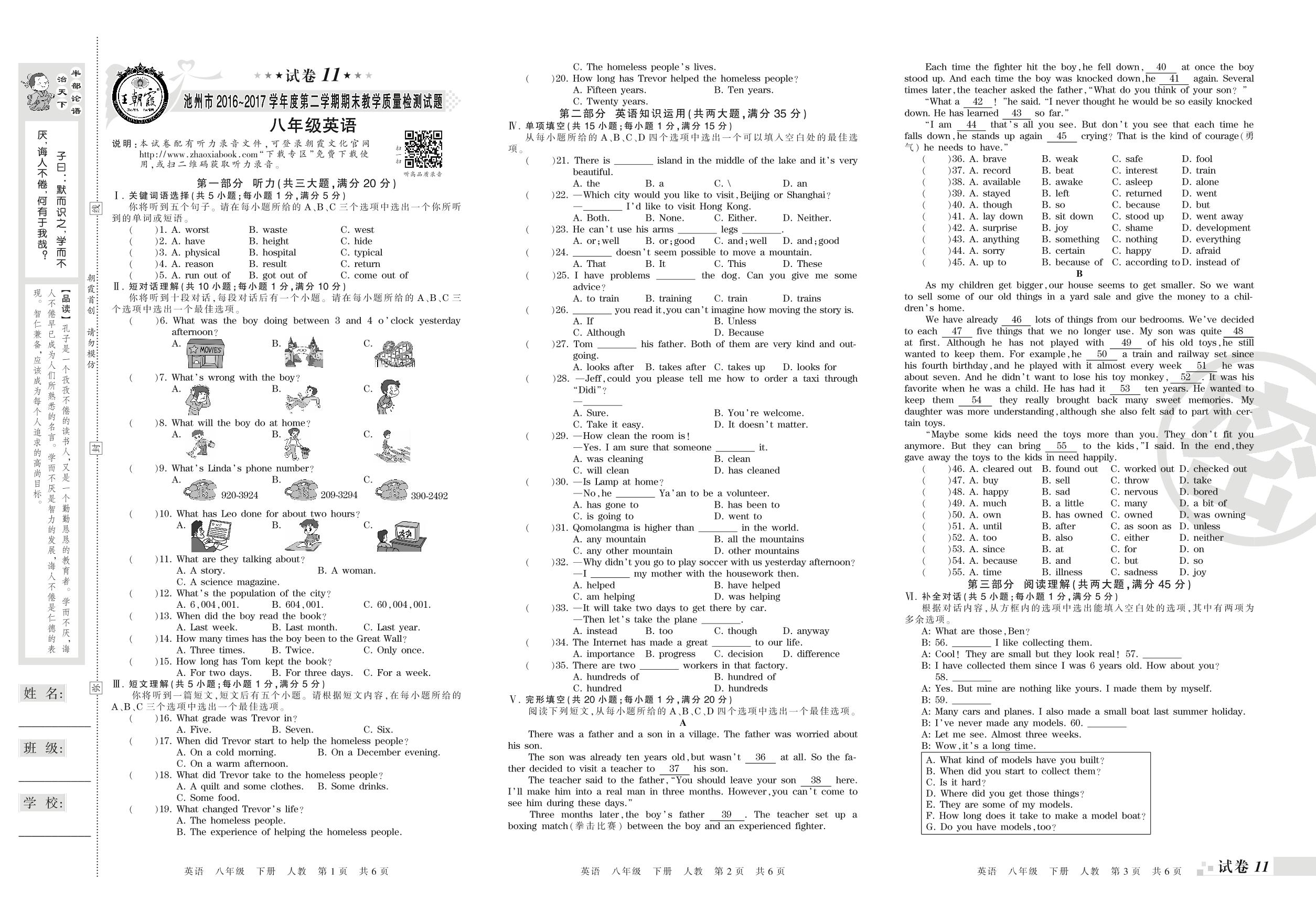 2016-2017学年第二学期池州市八年级英语试卷(人教版)【11】